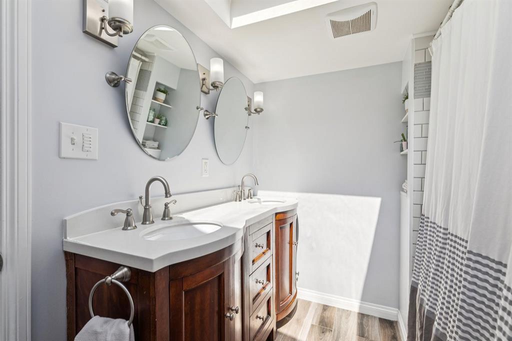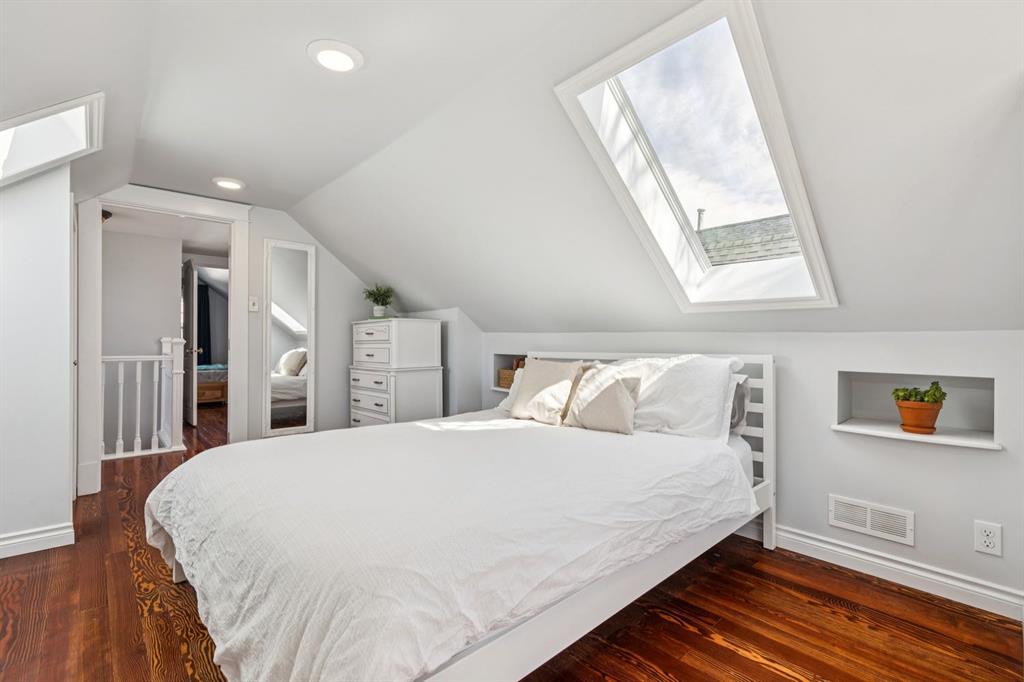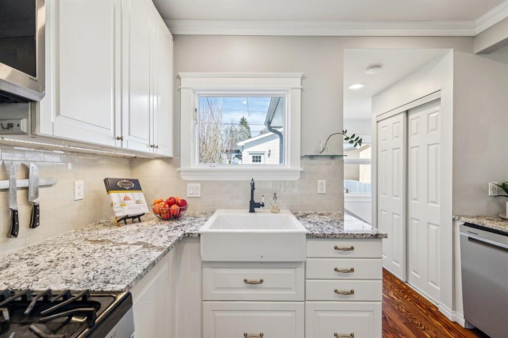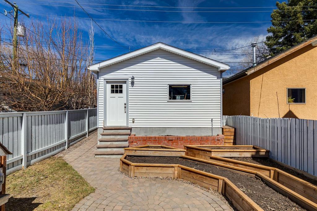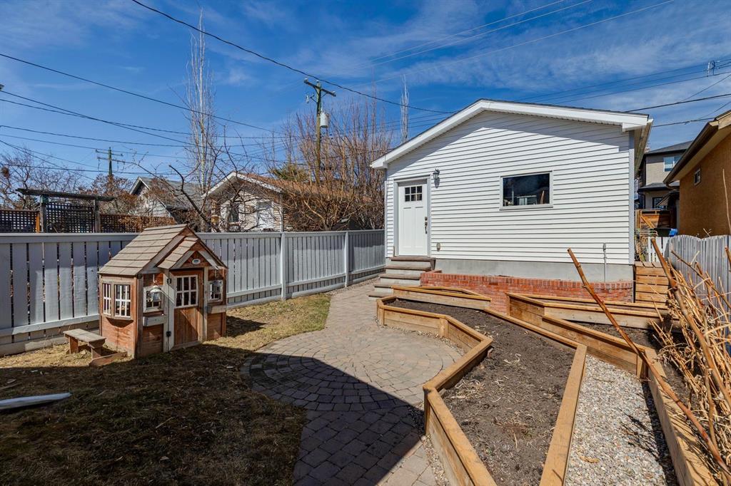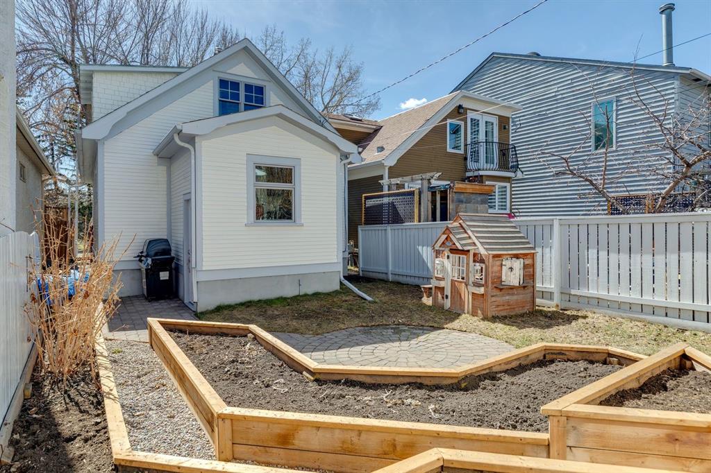 Location Alert! Renovated character home FACING A PARK! What an incredible lifestyle opportunity to own your own detached home on a quiet, residential street with a green space and playground right outside your door, just minutes from downtown and Marda Loop. This home was lovingly renovated top-to-bottom around 2015 with all new drywall, insulation, flooring, kitchen, bathrooms, windows, electrical, furnace, hot water tank, roof and more. With nearly 1,600 square feet of total usable space, this heritage home offers three bedrooms and two full bathrooms, accommodating a modern lifestyle without the limitations of some older homes that have no usable basement. New DOUBLE GARAGE added as well! Adorable curb appeal for this 1912 home with a white-and-brick colour scheme with charming red front door and sunny front porch. The spacious living room of this home has natural light streaming in through the south-facing windows and features a wood-burning fireplace and huge built-in bookcase. Nicely sized dining area can fit a full-sized table and includes an original leaded glass window. The kitchen has been brought into the modern era with granite counters, stainless steel appliances including gas range & Electrolux fridge, under-cabinet lighting, peninsula for extra counter and storage space & a window overlooking the backyard. Gorgeous Douglas fir flooring is new but preserves the heritage feel of the house! Step upstairs to your primary suite overlooking the park with custom built-ins everywhere and incredible natural light. Second bedroom at the rear of the home features exposed brick chimney and original furnace floor vent in the closet area and the full bath on this level has a huge skylight for wonderful natural light! The lower level of this home is fully finished with a large 3rd bedroom that can double as a rec room or home office, full bathroom with stall shower and a real sauna! Plenty of storage between the mechanical/laundry room and additional storage room. Outside, in the backyard, you will find raised garden beds ready for your ideas this summer and space to enjoy our long Calgary summer nights! With a newer furnace 2025 and hot water tank 2022, this home is up to date and move-in ready! If you’ve been dreaming of owning a piece of history, this home is the one – a park-facing location and a gorgeous home at a great price!