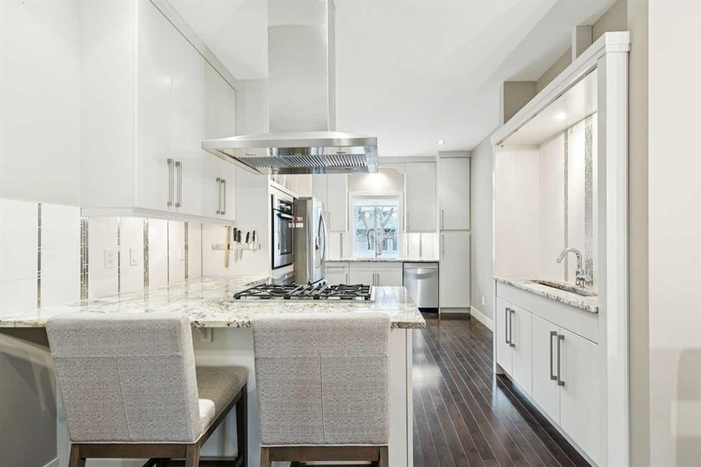 This is an exceptional opportunity to own a single detached home with a south backyard at an attractive price point in the heart of the vibrant Marda Loop area. It is perfect for a couple or small family seeking space, style, and walkable convenience. Inside, a neutral palette and warm hardwood floors create an inviting main floor designed for everyday living. A glass-enclosed home office provides a quiet, light-filled workspace, while a contemporary fireplace elegantly separates the living and dining areas, adding both function and architectural interest. The bright, open-concept kitchen is thoughtfully designed with a gas cooktop, stainless steel appliances, bar sink for entertaining, generous storage, and a breakfast bar for casual meals or morning coffee. A practical mudroom and powder room offer seamless access to the double detached garage, making daily routines effortless. Upstairs, the primary retreat features large windows, two closets, and a well-appointed ensuite with double sinks and a generous tub/shower combination. Two additional bedrooms, a full bathroom, and convenient laundry make this level well suited for family living. The fully developed basement extends the home’s versatility with a comfortable family room for movie nights, space for a games table or play area, plus a fourth bedroom and additional bathroom, ideal for guests, a teen, or extended family. Outside, the sunny south-facing backyard is a true highlight, offering a private deck with hot tub, mature trees, and room to relax or entertain all summer long. Located on a lively street in a sought-after inner-city neighbourhood, you’re just steps from Richmond School, playgrounds, and the Richmond Knob Hill outdoor skating rink. It is only minutes to Marda Loop and 17th Avenue’s trendy shops, restaurants, cafes, and groceries. With an easy bike commute to downtown, this home delivers outstanding lifestyle value in one of Calgary’s most desirable communities.