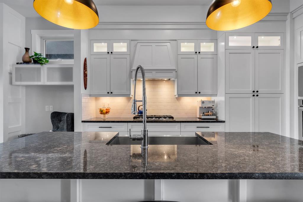 The main floor features a distinctive layout that balances bright, open-concept living with a private front dining room—perfect for hosting memorable dinners. Soaring 10-foot ceilings and expansive windows flood the space with natural light, while refined finishes elevate every corner. In the Kitchen you will find a stainless steel appliance package complete with built in oven & gas cooktop for your inner Chef. Shaker cabinetry with glass accents and a built in hood fan provide ample storage, and the central island with designer pendant lighting is the perfect gathering place for the home. A paneled fireplace with crisp shaker detailing anchors the living room, creating a warm and inviting atmosphere. Completing the main level is a functional mudroom with custom millwork and a private 2-piece powder room.