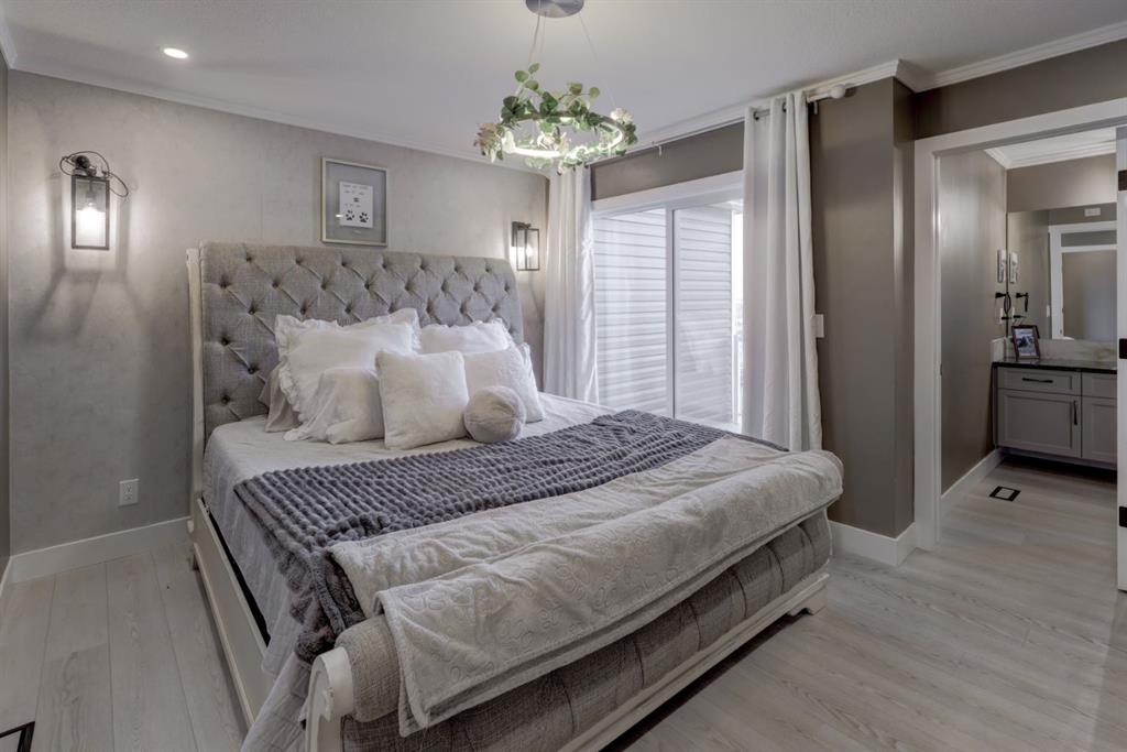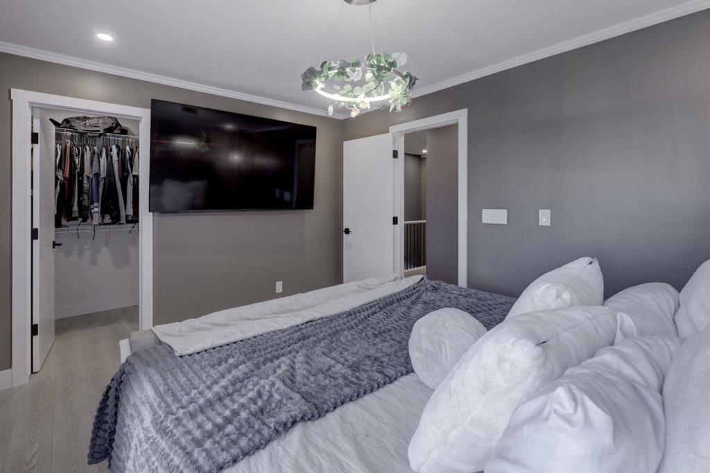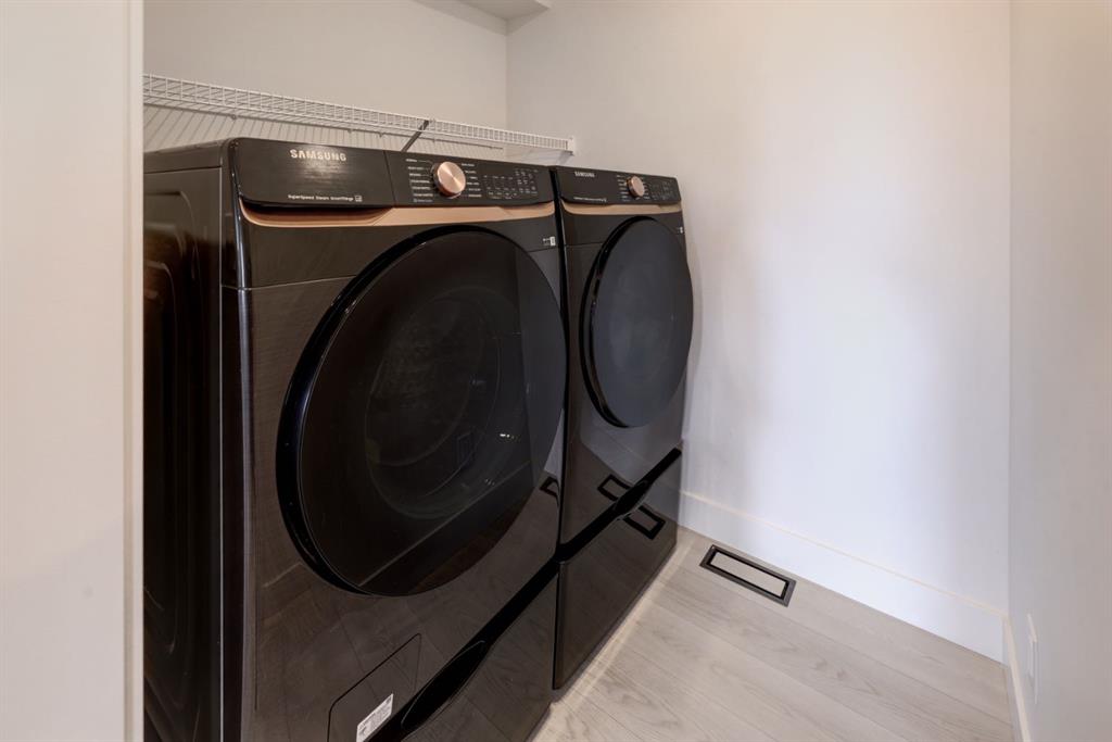 Upstairs, the spacious primary suite offers a walk-in closet, luxurious ensuite with a floating vanity and motion-sensor lighting, plus a private balcony to take in the mountain views. Two additional bedrooms, upper laundry, and a full bath complete the level.