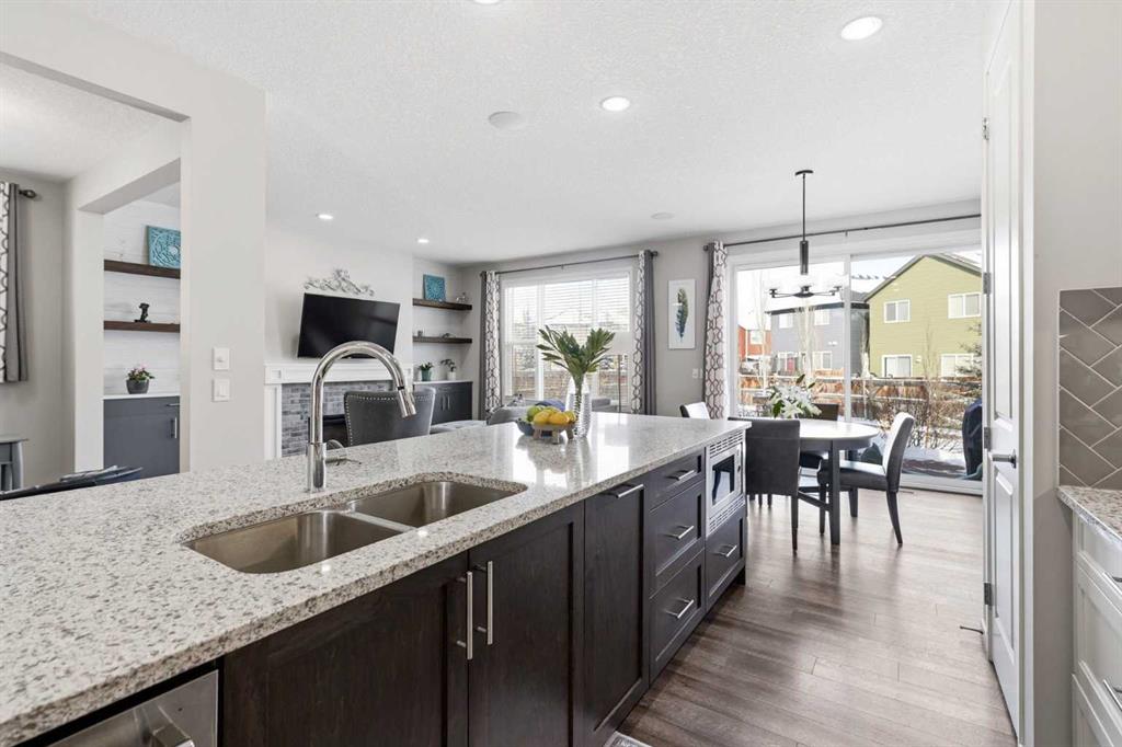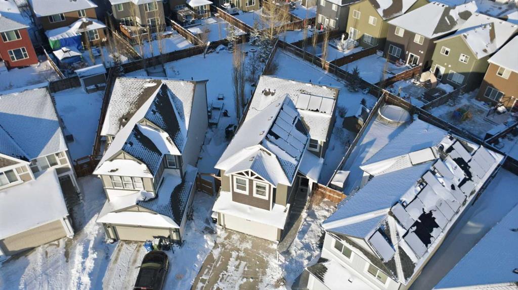 Welcome to the ultimate lake-lifestyle retreat in Auburn Bay. Set on one of the largest lots in the area; an impressive 50% larger than the average! This nearly 2,100 sq. ft. home offers a rare fusion of space, sustainability, and sophisticated style. The heart of the home is a chef-inspired kitchen, featuring floor-to-ceiling cabinets, a spacious pantry, and one of the largest islands you will ever see, comfortably seating six. This space is perfect for hosting Sunday brunch or evening entertaining. The living room features a cozy fireplace, and the dedicated office nook is a great added feature for modern work or study. The main & upper floors flow seamlessly with durable vinyl plank flooring and an open-concept layout, all bathed in natural light. Upstairs, you will discover a massive bonus room, three spacious bedrooms, including the primary suite with a luxurious ensuite and a walk-in closet. A built-in desk area and a dedicated laundry room complete this level. This home is packed with high-value upgrades designed for efficiency and comfort, including fully paid-off solar panels to curb utility costs, triple-pane windows for superior energy efficiency, central A/C, and a water softener. Outside, enjoy the MASSIVE fenced backyard with tons of trees for added privacy, complete with a huge, maintenance-free deck, a stamped concrete area perfect for a fire pit, and an in-ground irrigation system ensuring a lush, beautiful lawn. This rare and complete package is truly a find in this area. Don’t miss out!