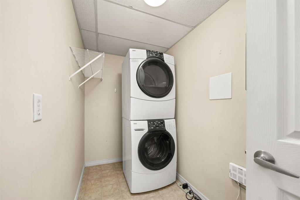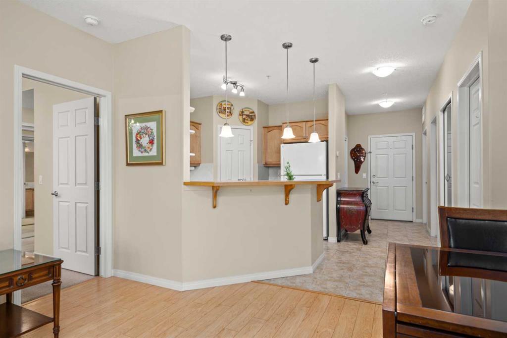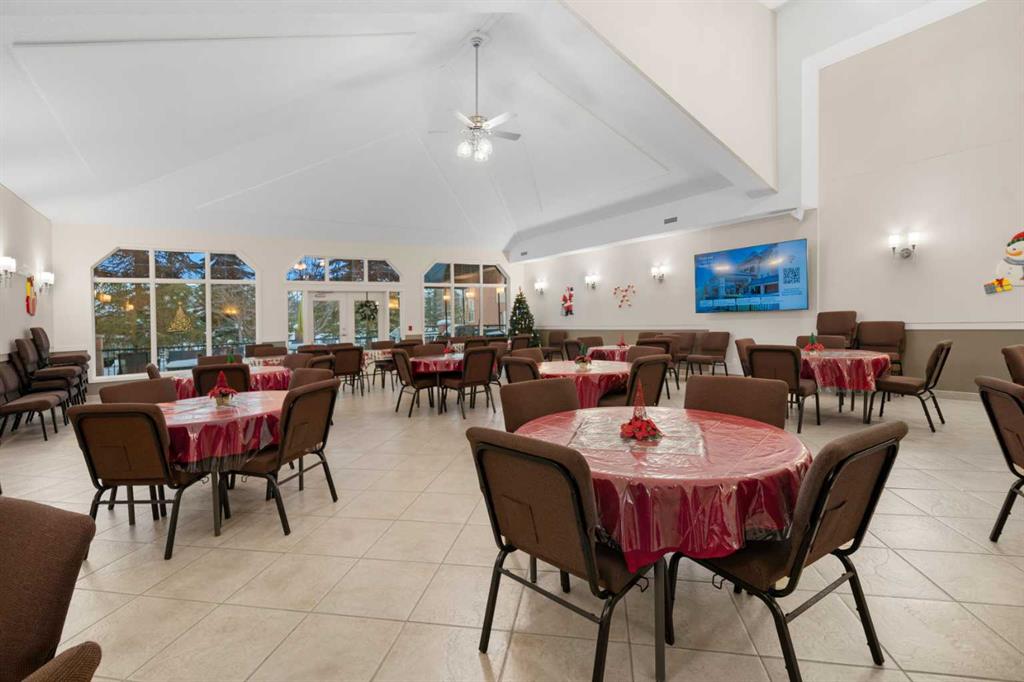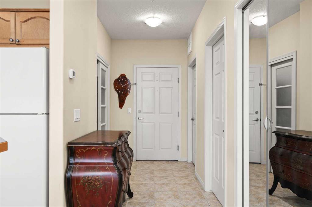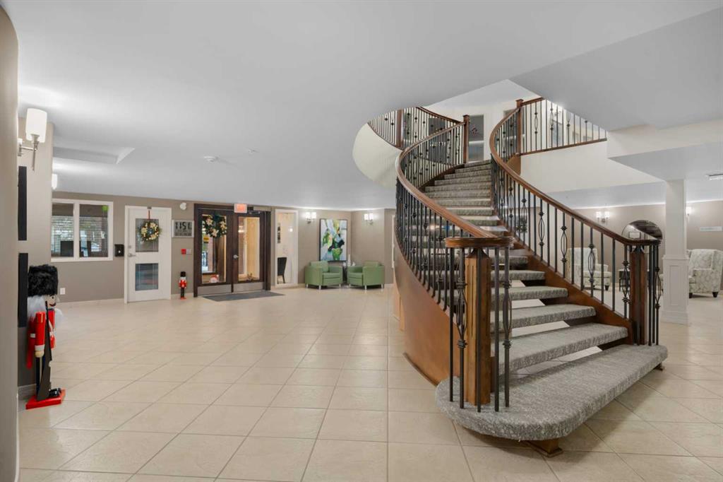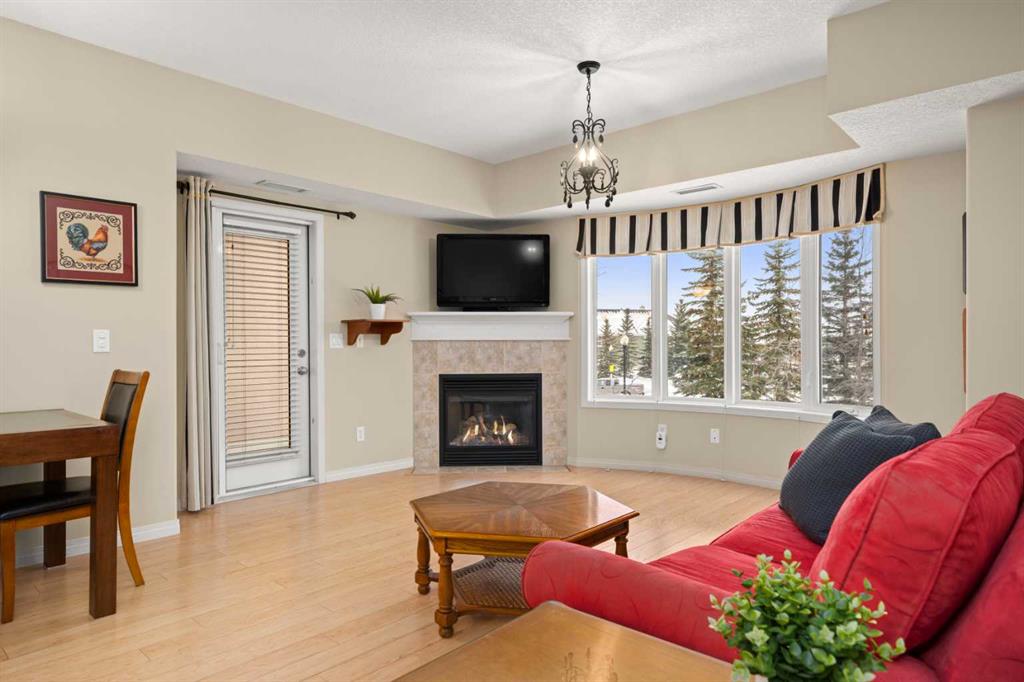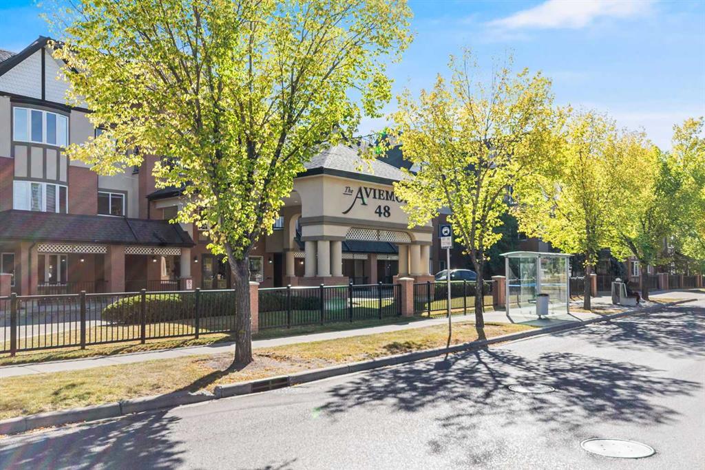 Welcome to The Aviemore, McKenzie Towne’s premier 55+ community. This bright and spacious 2-bedroom plus den, 2-bathroom home offers 1,089 SqFt of well-designed living with a quiet, private setting overlooking the courtyard. The thoughtful layout begins with a welcoming front foyer, where the laundry room sits to one side and a dedicated den to the other, creating a practical, organized entry before the floorplan opens into the main living space. The kitchen features maple cabinetry, crisp white appliances, a full pantry, plenty of counter space, and a raised breakfast bar, and it flows seamlessly into the open-concept living room anchored by a charming corner gas fireplace. Just off the living area, the covered south-facing balcony provides a peaceful outdoor retreat with lovely natural light and serene views. The primary bedroom is impressively large and includes walk-through closets leading to a spacious ensuite with double sinks, a deep soaker tub, and a separate stand-up shower. A second bedroom, full main bathroom, excellent in-suite storage, and a location just steps from the elevator all add to the day-to-day comfort of this home. Additional conveniences include a titled underground parking stall located close to the elevator, an assigned storage cage directly in front of the stall, central air conditioning, and condo fees that include all utilities aside from electricity. Residents of The Aviemore enjoy outstanding amenities such as a party room, theatre, and library on the main level; a fitness centre with steam sauna, games room, puzzle room, and two guest suites on the second level; and a wood shop and convenient car wash bay on the parkade level, along with beautifully maintained outdoor spaces and ample visitor parking. The building is pet-friendly with Board approval (one small dog or cat under 20 lbs). Ideally located just steps from the shops, restaurants, and services of High Street, as well as nearby Safeway, Walmart, transit, walking paths, and Inverness Pond – with quick access to Deerfoot and Stoney Trail – this quiet, private, beautifully maintained home offers an exceptional lifestyle in one of Calgary’s finest adult communities.