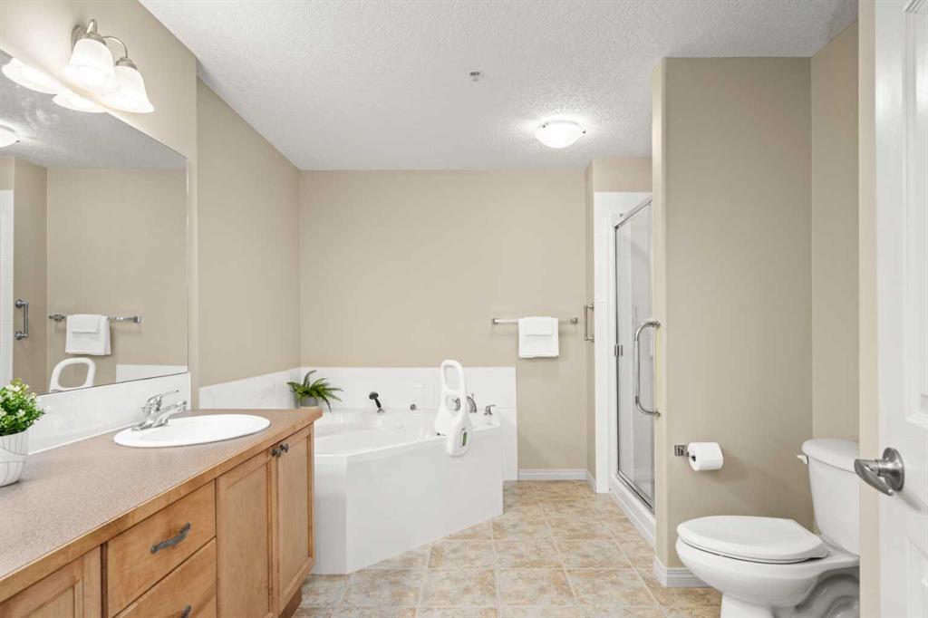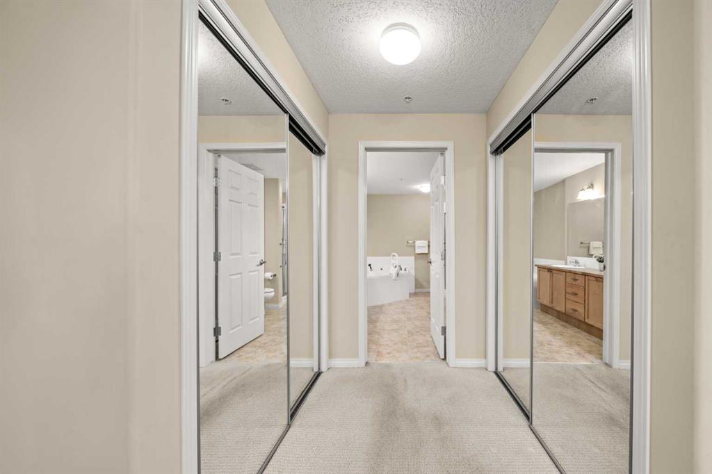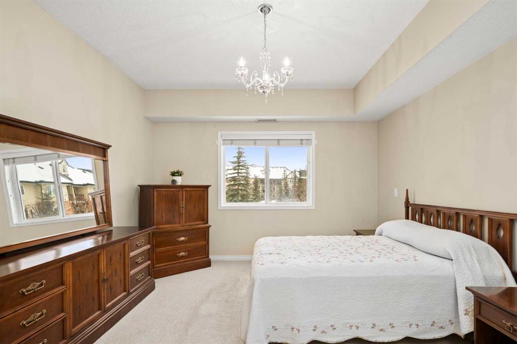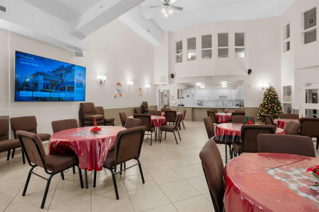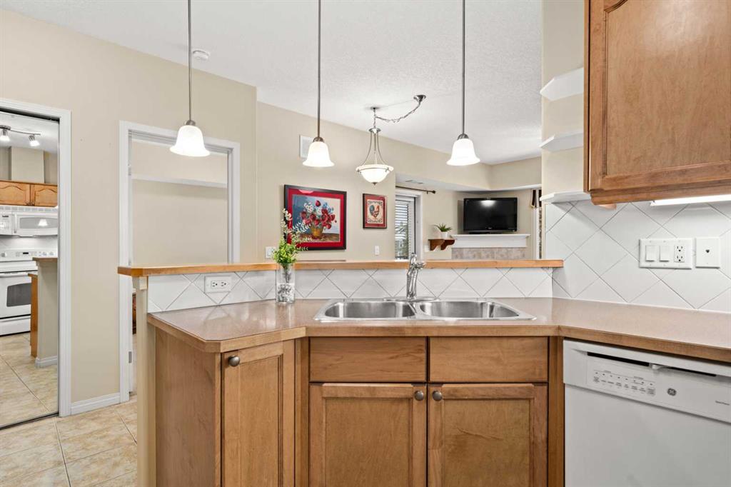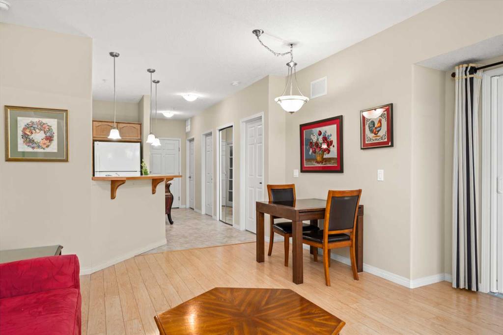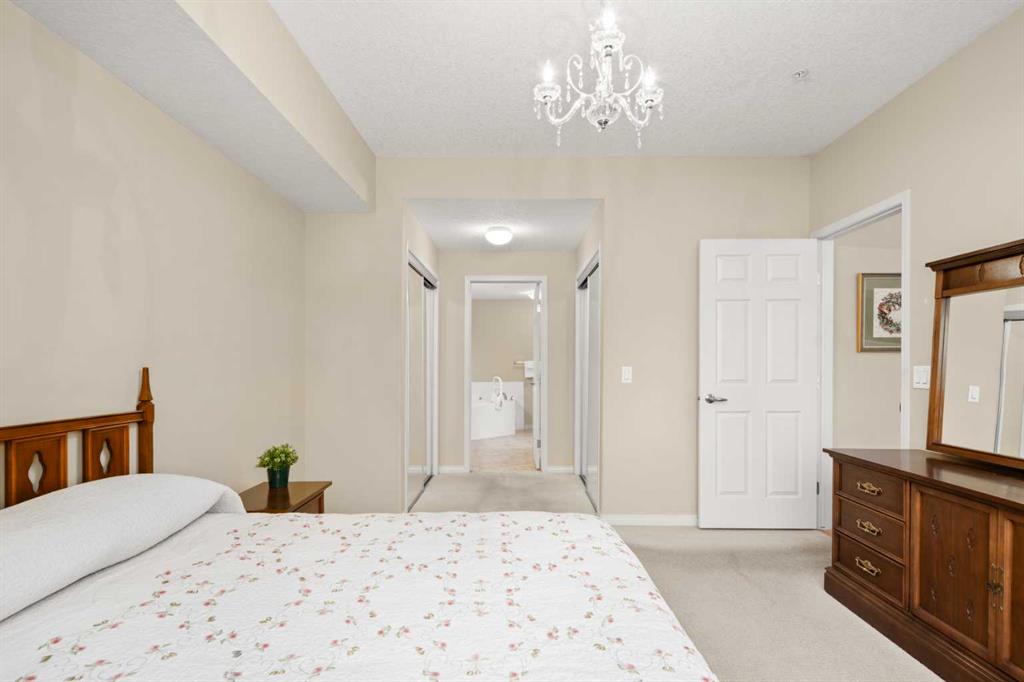 Welcome to The Aviemore, McKenzie Towne’s premier 55+ community. This bright and spacious 2-bedroom plus den, 2-bathroom home offers 1,089 SqFt of well-designed living with a quiet, private setting overlooking the courtyard. The thoughtful layout begins with a welcoming front foyer, where the laundry room sits to one side and a dedicated den to the other, creating a practical, organized entry before the floorplan opens into the main living space. The kitchen features maple cabinetry, crisp white appliances, a full pantry, plenty of counter space, and a raised breakfast bar, and it flows seamlessly into the open-concept living room anchored by a charming corner gas fireplace. Just off the living area, the covered south-facing balcony provides a peaceful outdoor retreat with lovely natural light and serene views. The primary bedroom is impressively large and includes walk-through closets leading to a spacious ensuite with double sinks, a deep soaker tub, and a separate stand-up shower. A second bedroom, full main bathroom, excellent in-suite storage, and a location just steps from the elevator all add to the day-to-day comfort of this home. Additional conveniences include a titled underground parking stall located close to the elevator, an assigned storage cage directly in front of the stall, central air conditioning, and condo fees that include all utilities aside from electricity. Residents of The Aviemore enjoy outstanding amenities such as a party room, theatre, and library on the main level; a fitness centre with steam sauna, games room, puzzle room, and two guest suites on the second level; and a wood shop and convenient car wash bay on the parkade level, along with beautifully maintained outdoor spaces and ample visitor parking. The building is pet-friendly with Board approval (one small dog or cat under 20 lbs). Ideally located just steps from the shops, restaurants, and services of High Street, as well as nearby Safeway, Walmart, transit, walking paths, and Inverness Pond – with quick access to Deerfoot and Stoney Trail – this quiet, private, beautifully maintained home offers an exceptional lifestyle in one of Calgary’s finest adult communities.