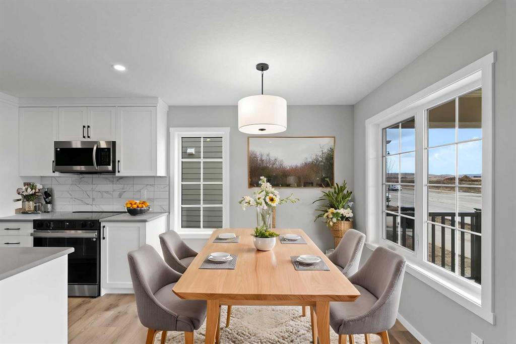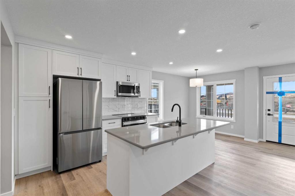 Welcome to this NO CONDO FEE END UNIT TOWNHOME! Impressive curb appeal and a modern design blends with a highly functional layout boasting 3 beds / 3 baths and over 1500 sq ft of finished living area. This home has also been highly upgraded throughout – raised kitchen cabinets with crown molding, upgraded luxury vinyl plank, quartz countertops, tiled bathroom walls, as well as many additional pot light fixtures. Upon entry the open concept is exemplified with an inviting Kitchen/Dining/Living space on the main floor. The kitchen is equipped with stainless steel appliances, full height kitchen cabinets, and loads of counter space and storage! There is also a cozy living room, a large pantry closet, a 2 piece bath and double attached garage. Upstairs, the primary bedroom is bright and spacious and has a private 4 piece ensuite with a large walk- in shower. The bonus room provides more privacy for the primary bedroom from the other 2 bedrooms upstairs. There is also a full laundry room and a 4 piece bath that completes the upstairs. The lower level is bright and has a 3 piece bathroom rough-in that is perfect for a future bathroom. This amazing home is also conveniently located minutes away from the Somerset LRT STATION, large Commercial Centers that include IKEA, T & T Asian Market, the Tsuut’ina Costco, the South Health Campus Hospital and has quick access to highways. This is the perfect home for you. Book your showings today!