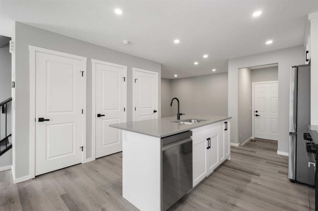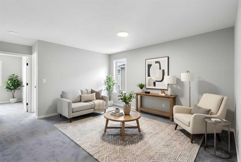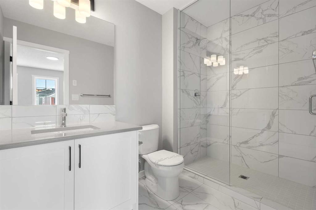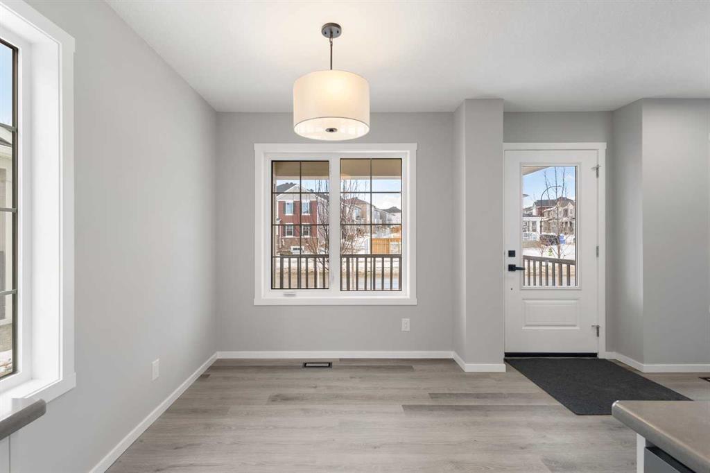 An exceptional end-unit residence in the heart of Yorkville, offering the space and privacy of a detached home — without condo fees. Built in 2025 and thoughtfully upgraded throughout, this elegant two-storey home presents over 1,500 sq ft of refined living space designed for both comfort and style. The main level welcomes you with a bright, open-concept layout anchored by a beautifully appointed chef’s kitchen. Full-height cabinetry with crown detailing, quartz countertops, luxury vinyl plank flooring, designer tilework, and upgraded stainless steel appliances create a sophisticated culinary space with generous prep and storage areas. Expansive windows invite natural light into the dining and living areas, enhancing the home’s airy, contemporary feel. A convenient 2-piece powder room and direct access to the double detached garage complete this level. Upstairs, the primary retreat offers a peaceful escape with a private 4-piece ensuite featuring an oversized walk-in shower and thoughtful finishes. Two additional bedrooms are well-proportioned and ideal for family, guests, or a dedicated home office. A full bathroom and upper-level laundry add everyday practicality. The lower level is bright and intelligently laid out with a bathroom rough-in already in place — providing flexibility for future development tailored to your needs. Situated in Yorkville, one of Calgary’s emerging southwest communities, this home benefits from quick access to Macleod Trail and Stoney Trail, placing downtown Calgary and key business districts within easy reach. Residents enjoy proximity to the Somerset–Bridlewood LRT station, major retail destinations including Costco, IKEA, and Southcentre Mall, as well as restaurants, parks, and recreational amenities. The South Health Campus is also conveniently accessible. This is a rare opportunity to own a nearly new, fully upgraded end unit in a growing community that blends modern design with everyday convenience. A refined home offering both lifestyle and long-term value.