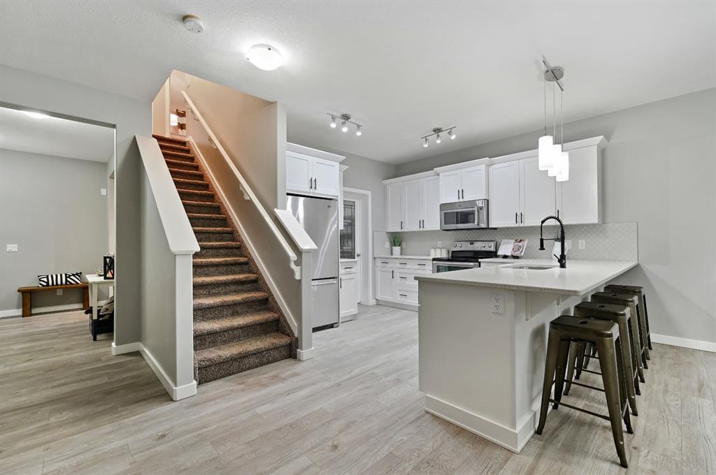 OPEN HOUSES: Thursday March 5th 5-7 pm & Sunday March 8th 1-3 pm | Imagine living just steps from the serene canals in Bayside Estates. This beautifully maintained, move-in-ready home offers over 2,700 sqft of finished living space for your family to grow, play, and relax. Step inside to a bright and spacious entryway that immediately feels warm and inviting. The main floor is thoughtfully designed for everyday living and entertaining, featuring a clean, modern kitchen with crisp white cabinetry, quartz countertops, and a generous pantry that keeps everything organized and within reach. Just off the pantry, you will find a practical mudroom with closet space, perfect for keeping coats, backpacks, and daily essentials neatly tucked away. The adjoining living room is centered around a cozy gas fireplace. A convenient half bath completes this level. Upstairs, you will find a large bonus room that works as a media space, playroom, or quiet retreat. The private primary suite offers a comfortable escape with a four-piece ensuite featuring a soaker tub, separate shower, and an extended vanity with plenty of counter space and storage. The ensuite leads directly into a walk-in closet for added convenience. Two additional bedrooms are well sized (including one with its own walk-in closet) and are both served by another 4-piece bathroom. Upper-level laundry adds everyday ease to this well-designed second floor. The fully finished basement, completed with all required permits, expands your living space further. It features a spacious recreation area, an additional bedroom, and another full four-piece bathroom, making it ideal for guests, teens, or extended family. Step outside and enjoy the lifestyle Bayside is known for: scenic walking paths along the canals, Nose Creek Elementary and W.H. Croxford High within walking distance, and nearby shopping and dining at Bayside Village. On warm summer evenings, sip margaritas on the patio at the local Mexican restaurant while watching the sun set over the water. In the winter, lace up your skates for a game of shinny on the frozen canals. This is what canal-side living is all about. Room for everyone, a top location, and a lifestyle you’ll love, this home has it all.