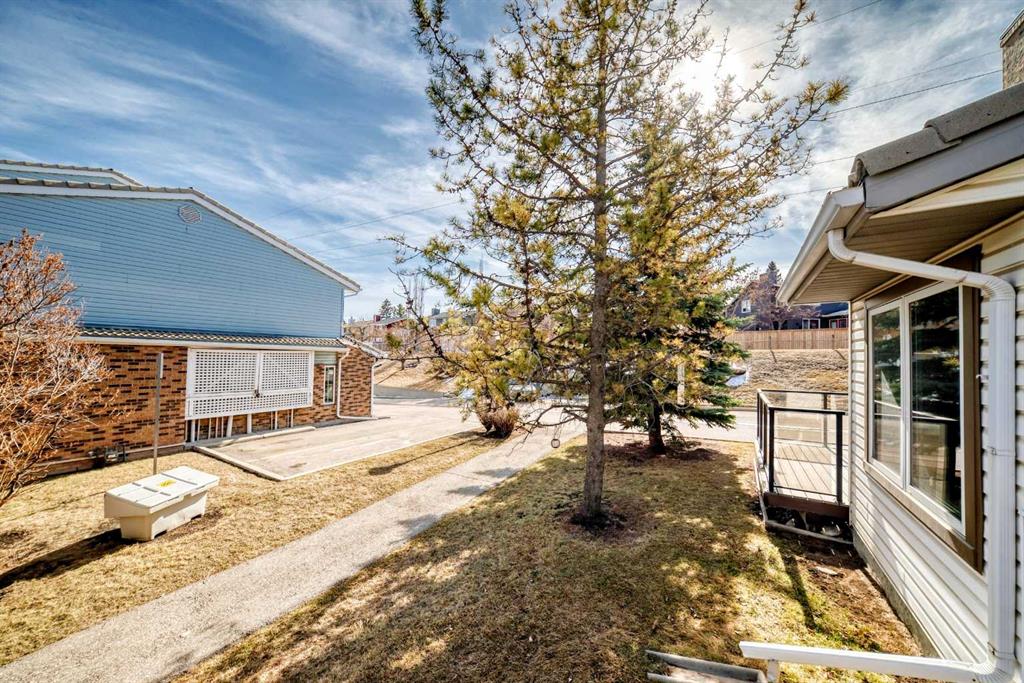 OPEN HOUSE SAT 28TH 2- 4 PM The Absolute best location & floor plan in Coachway Garden in the sought after community of Coach Hill. This end unit sides onto a quiet south facing lane way providing spacious surrounding & backs onto a private composite deck featuring glass railing with mature tree’s & rear walkway. Step inside to this welcoming entry leading to the spacious kitchen with plenty of cupboards & dining room filled with natural light. The generous living room boasts a custom & tasteful concrete surround gas burning fireplace. Upstairs you’ll find 3 bedrooms, 4 piece bath including a large primary bedroom with its own 3 piece ensuite. Other features include newer furnace, vinyl windows & tile roofing. Enjoy the convenience of a single attached garage with easy commute & access to a variety of amenities, parks, shopping & schools. Come on Buy!!