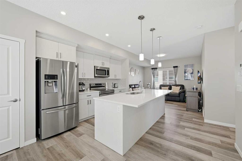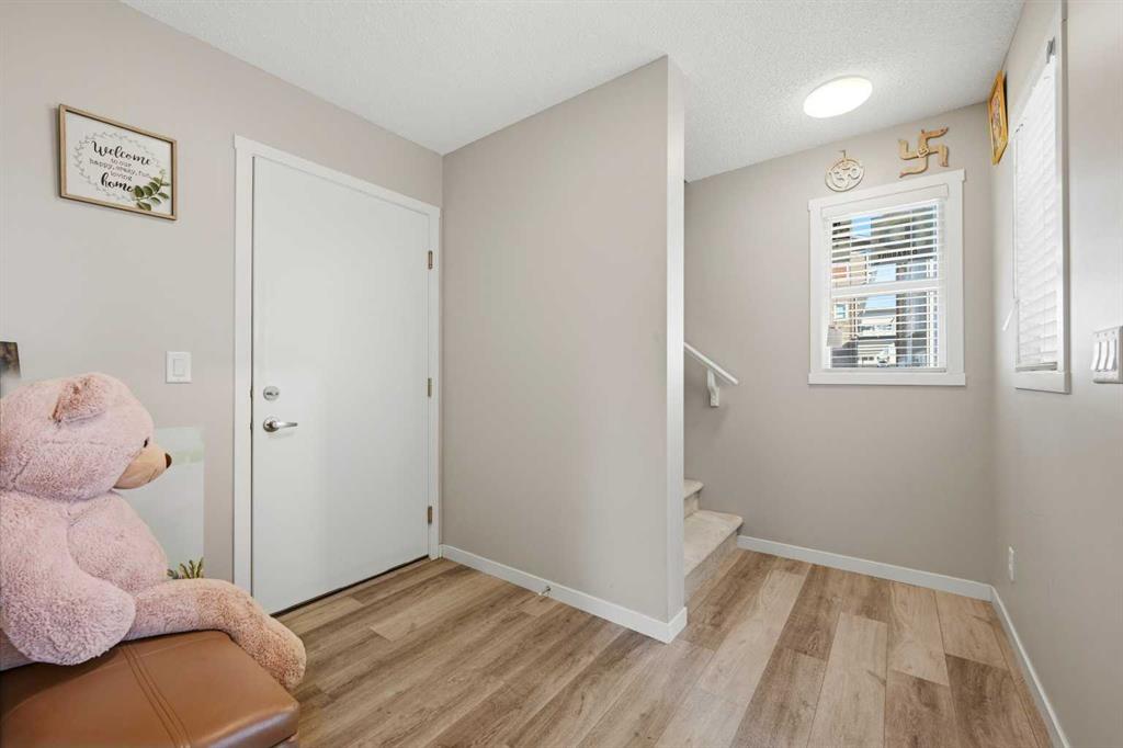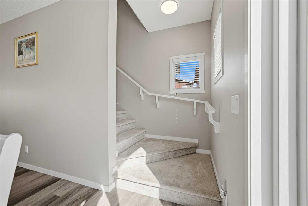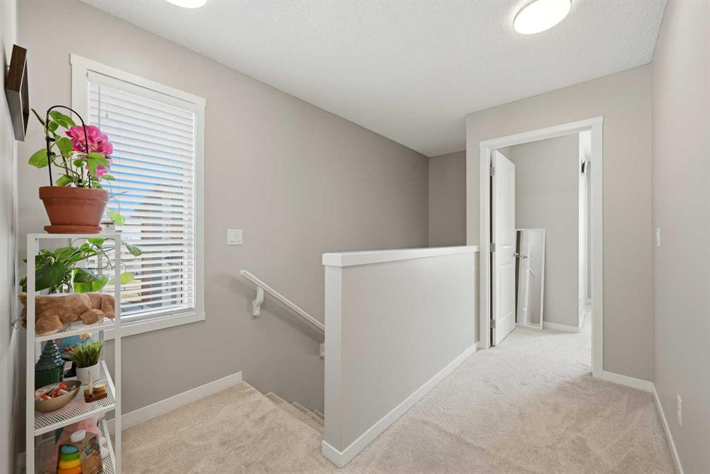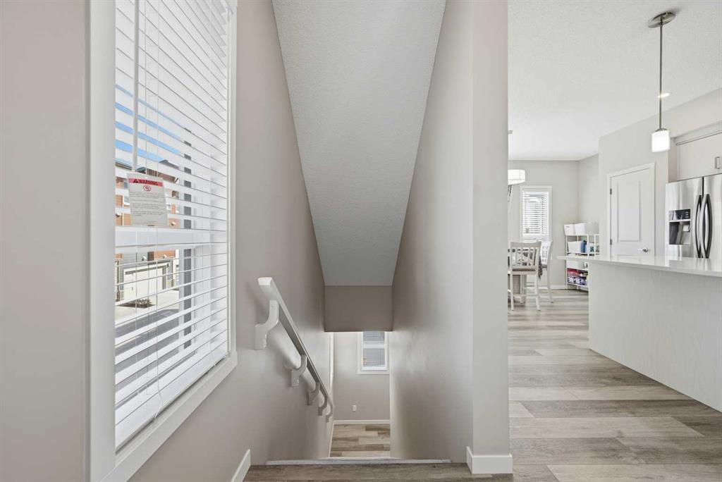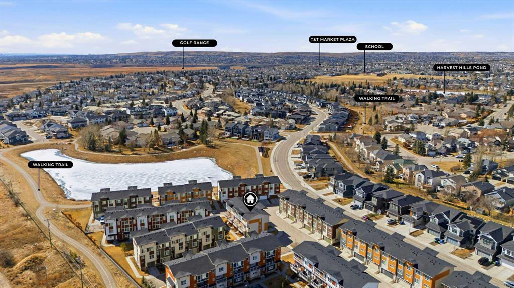 Welcome to this beautifully maintained EAST-FACING TOWNHOUSE in the highly sought-after community of HARVEST HILLS! Offering 3 BEDROOMS, 2.5 BATHROOMS, and a SINGLE ATTACHED GARAGE, this home is perfect for families, first-time buyers, or investors. The main level features a bright and open-concept layout with large windows that fill the space with natural light. The MODERN KITCHEN WITH STAINLESS STEEL APPLIANCES offers ample cabinetry and counter space, seamlessly flowing into the dining and living areas—ideal for both everyday living and entertaining. Step out onto your EAST-FACING BALCONY, perfect for enjoying your morning coffee and sunrise views. Upstairs, you’ll find 3 SPACIOUS BEDROOMS, including a comfortable primary bedroom, along with a well-appointed full bathroom. The additional bedrooms are ideal for family, guests, or a home office. A convenient 2-PIECE POWDER ROOM on the main level adds extra functionality. Located in a prime area close to all amenities including grocery stores such as Sobeys Country Hills (1.5 km), T&T Supermarket Harvest Hills (2.7 km), and Real Canadian Superstore (3.2 km). Enjoy nearby dining options like Sizzling Grill, Casa Catrina, and Brooklyn Dumpling Shop, all within minutes. Cafés including Chai Sutta Bar, Cafe Karak, and Cafe Rewind are also within a short drive. Nature lovers will appreciate being steps away from HARMONY PARK (just a 1-minute walk), as well as Harvest Hills Park and surrounding green spaces. Easy access to schools, transit, major roadways, and all essential amenities makes this an unbeatable location. A PERFECT BLEND OF COMFORT, LOCATION, AND VALUE — DON’T MISS OUT!