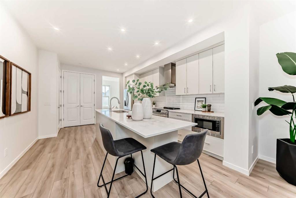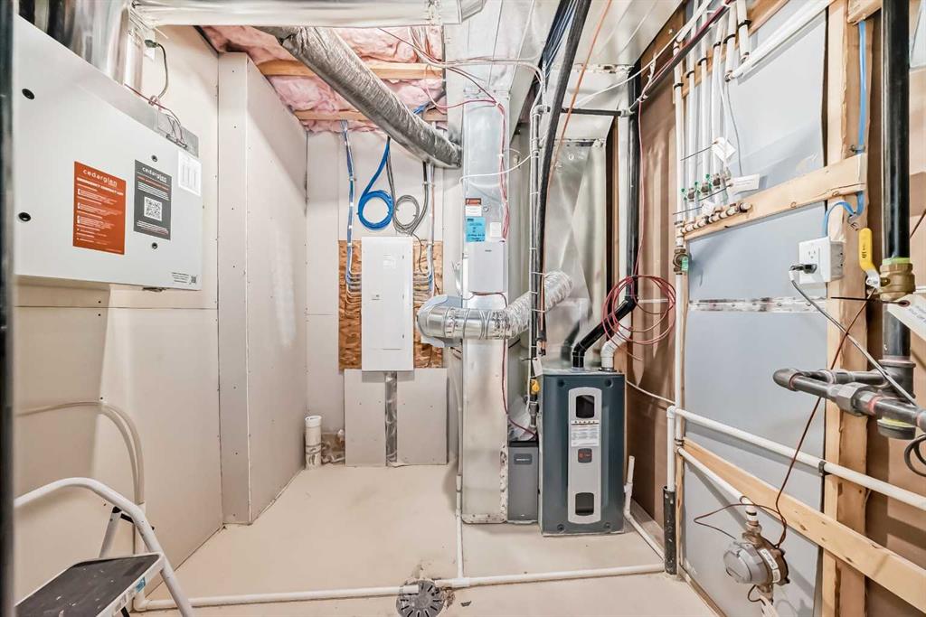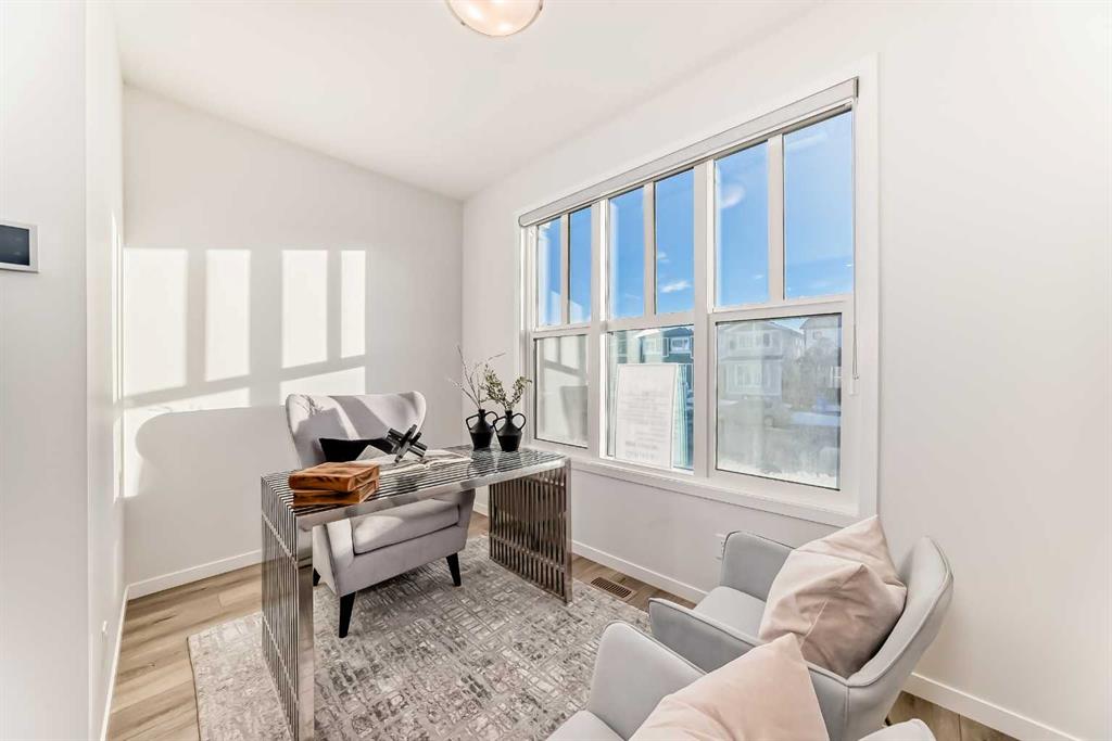 Discover refined living in this exceptional two-storey duplex nestled in the scenic Haskayne community of Rockland Park. Thoughtfully crafted for comfort and versatility, this residence blends modern elegance with functional design. Step inside to a bright, open main floor where a sleek, modern kitchen flows seamlessly into an inviting living area—perfect for hosting or unwinding. A private main-floor office offers the ideal workspace for today’s lifestyle. Upstairs, three spacious bedrooms and a stylish bonus room create a serene retreat for family living. The primary suite and upper level layout offer both comfort and convenience. Upper floor laundry is set for your convenience. The fully finished basement extends the home’s possibilities with two additional bedrooms, a full bathroom, and a second laundry setup, making it ideal for multi-generational living or added privacy for guests. Outside, enjoy the convenience of a detached two-car garage equipped with a rough-in EV outlet, perfect for electric-vehicle owners or future-proofing your investment. The house is also roughed in for A/C. Set in the picturesque Haskayne area, surrounded by natural pathways and future amenities, this home delivers a rare blend of modern living and community charm.