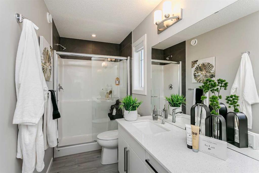 Welcome to this no-condo-fee end-unit 2-storey townhome by Bedrock Homes, located in the vibrant Heartwood community. This home features a double detached garage on a concrete pad and the added privacy of a side entrance. The thoughtfully designed layout offers 3 bedrooms and 2.5 bathrooms, perfect for families or professionals. The spacious primary bedroom includes a large walk-in closet and a private ensuite with dual sinks. Bright, functional living spaces and modern finishes complete the home, with easy access to parks, schools, and everyday amenities. A fantastic opportunity to own a low-maintenance home in a growing neighborhood.