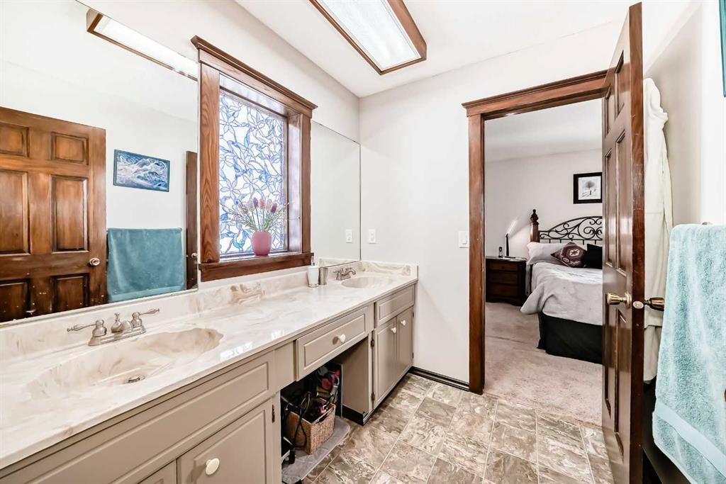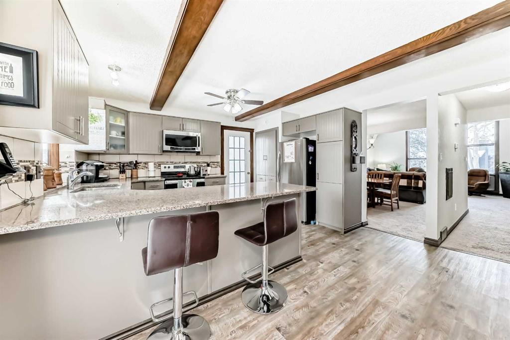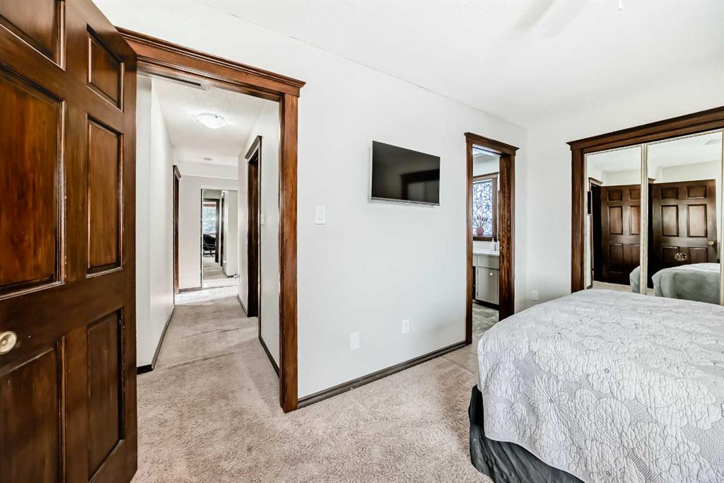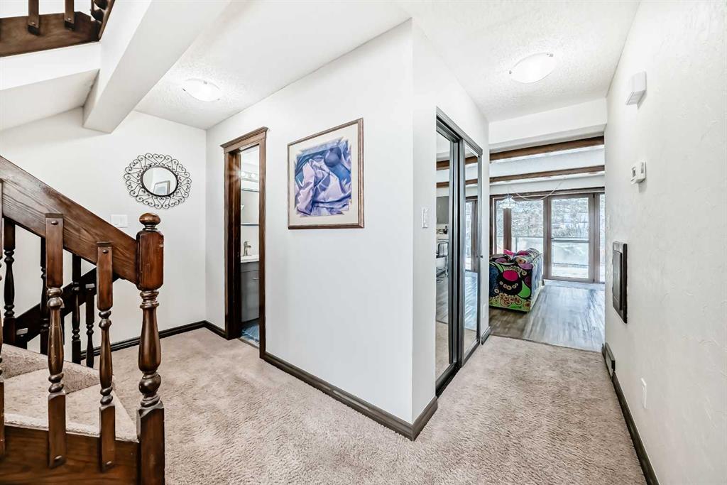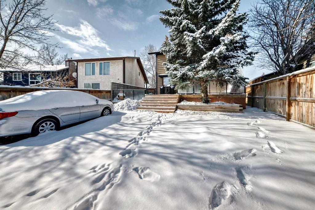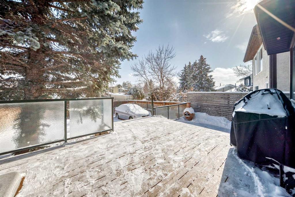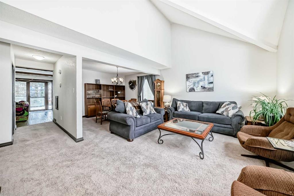 Move-in ready and well cared for, this Coach Hill home is also a great opportunity for someone looking to add their own cosmetic updates over time. Located close to the core while still tucked away from the noise, the home was built in 1980 and features distinctive design elements that still work well for modern living. The vaulted ceiling in the living room is the standout feature, paired with tall west-facing windows that bring in plenty of natural light. Mature trees provide privacy and help shade the home during hot summer afternoons. Some main level windows and patio door were upgraded in 2023, and the exterior was repainted in 2022. The main floor offers well-defined living spaces while still maintaining an open feel. The dining area flows naturally into the vaulted living room, creating a great space for gathering. At the back of the home, the kitchen and family room have a cozy feel with a fireplace, wet bar, and easy access to the large back deck with built-in hot tub. The kitchen has been thoughtfully updated over the years and includes a newer stove (2021) and dishwasher (2022). A natural gas line makes BBQ season easy. The upper level includes three bedrooms, and the spacious stair landing offers enough room for a small office or reading nook. The backyard also offers space for additional vehicle parking or RV storage. Mechanical updates include central air conditioning (2020), garage door and opener (2019), a new hot water tank (2025), and a high-efficiency furnace with humidifier installed in 2025 with ducts cleaned the same year. Additional features include a garburator and a fireplace log lighter. A great opportunity for buyers looking for a home with character, solid upgrades, and an opportunity to make cosmetic upgrades over time.