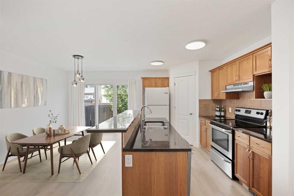 Welcome to this beautifully renovated half duplex offering an exceptional living experience in Cranston. This home features two spacious bedrooms, each equipped with its own four-piece ensuite, providing privacy and comfort. One of the bedrooms boasts a generous walk-in closet, another one has Her & His large closet. The property is flooded with natural light and designed for functionality, boasting a total of three bathrooms. Following the renovations, the place was upgraded with new light fixtures and new flooring, knock down ceiling, installed new doors and baseboards, added a new hood fan and given the entire property a fresh coat of paint. Enjoy the outdoors on the deck overlooking the backyard and benefit from the convenience of an attached one-car garage. Garage has additional entry door from backyard. The intelligent open floor plan includes the potential for additional living space in the unfinished basement, allowing for customization to suit your needs. Located directly across from Dr. George Stanley Elementary and Junior High School, this property offers easy access to public transportation, including bus stops, and is just minutes away from the South Health Campus, Cineplex VIP Cinema, Largest YMCA, huge shopping plaza in Seton. For your local shopping and dining needs, Sobeys – Cranston, Starbucks, and Good Earth Cafes, along with various restaurants, banks, and businesses, are within walking distance. Additionally, you’ll find parks nearby that provide stunning mountain and downtown views, as well as bike and walking paths leading to the river. This fantastic property is ideal for young families, investors, and first-time homebuyers alike! Don’t miss out on this incredible opportunity.