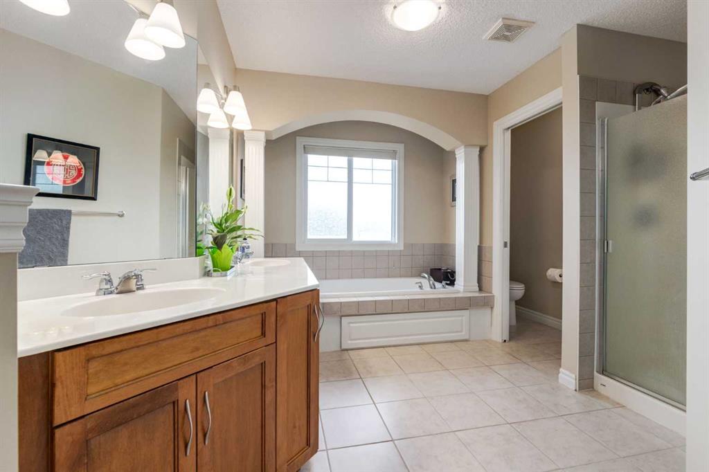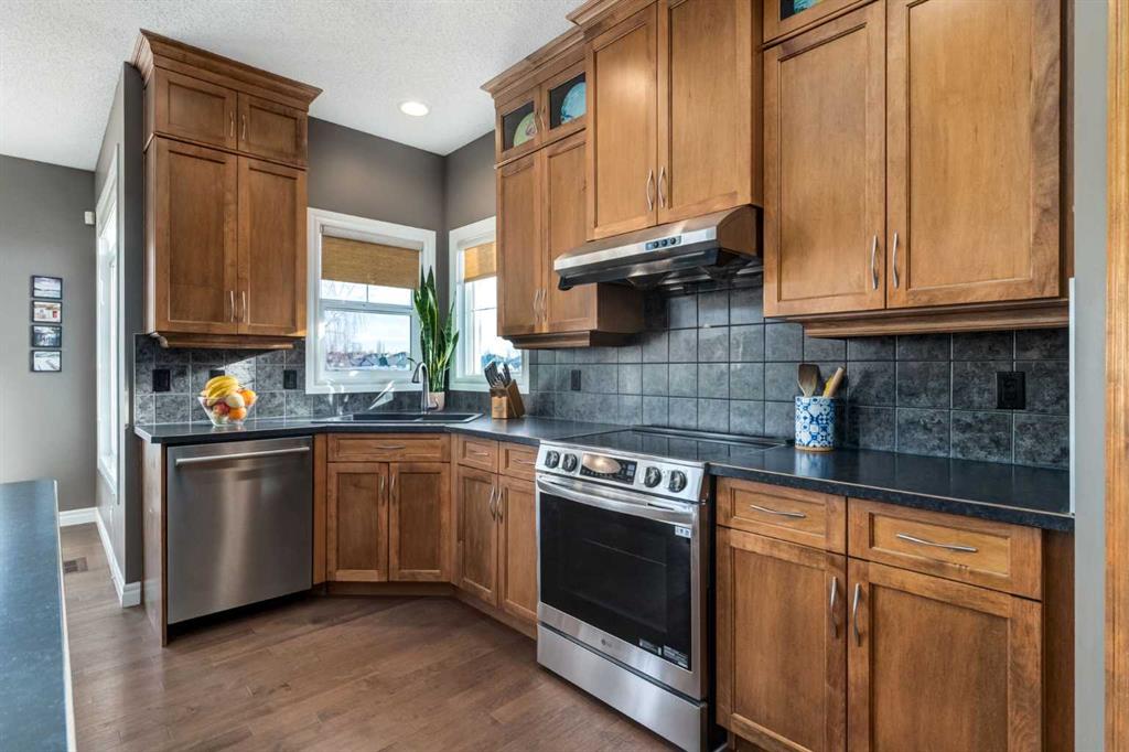 Welcome to this exceptional estate residence in the highly coveted community of Tuscany — where refined living meets timeless sophistication. Flooded with natural light, this beautifully designed home showcases an inviting open floor plan, rich maple hardwood flooring, and a spacious main-floor den ideal for a private office or library. The gourmet Chef’s kitchen is a true showpiece, featuring full-height cabinetry, premium stainless steel appliances, and an expansive island with a stylish eating bar—perfect for both everyday living and upscale entertaining. Upstairs, discover an impressive bonus room adorned with custom-built-ins, including two desks for a work-from-home space, along with three generous bedrooms. The luxurious primary suite is a serene retreat, complete with a large walk-in closet and a spa-inspired ensuite offering dual vanities, an oversized glass shower, and a deep soaker tub designed for ultimate relaxation. The fully finished lower level extends your living space with two additional bedrooms, a chic 3-piece bathroom, and a beautifully crafted recreation room—ideal for movie nights, fitness, or guests. Step outside to your private outdoor oasis, where mature landscaping frames a stunning backyard featuring an aggregate patio, low-maintenance Trex decking, and an amazing firepit area. It’s the perfect setting for elegant gatherings, summer BBQs, or peaceful evenings under the trees. Situated on a quiet, well-appointed street, this premier corner lot location offers the convenience of walking to schools, boutique shopping, Starbucks, scenic ravines, and miles of pathways—all while providing quick access to the LRT and major routes. This is more than a home—it’s an elevated lifestyle, crafted for discerning families and those who love to entertain. OPEN HOUSE SUNDAY JAN.11TH 1:00-4:00!!
