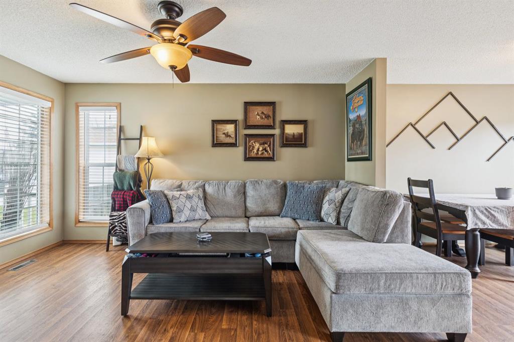 PRIDE OF OWNERSHIP shines in this beautifully maintained semi-detached home in the sought-after community of West Terrace in Cochrane! Ideally located within walking distance to schools, parks, playgrounds, Bow River pathways, and downtown shops and restaurants. Bright and open-concept main floor featuring a functional kitchen with stainless steel appliances, pantry, solid wood cabinetry, and eat-up island. Offering 3 bedrooms up, 1 down, and 2.5 bathrooms—perfect for families, downsizers, or investors. Fully finished basement with rec room and bedroom adds flexible living space. Enjoy the private backyard with a large deck, tiered low-maintenance landscaping, and room for summer fire-pit nights. Single attached garage plus driveway parking for a second vehicle. Recent updates include roof and hot water tank (2022). NO CONDO FEES! Steps to Mitford Park, schools, and pathways, with quick access to Calgary and the mountains. Exceptional value—MUST VIEW!