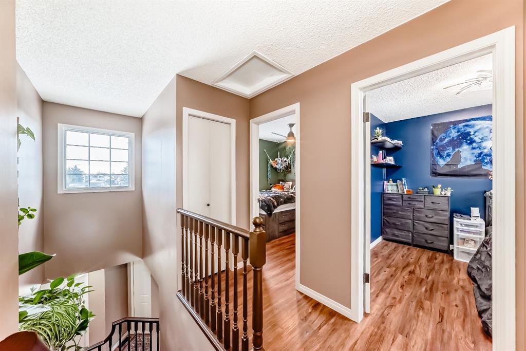 Welcome to this beautifully maintained, fully developed 2-storey home in the sought-after golf course community of Woodside Estates. Thoughtfully suited for young families, retirees, or golf enthusiasts, this home offers 3 bedrooms, 2.5 bathrooms, and a versatile den/office/flex room in the basement, blending comfort, style, and thoughtful updates throughout. Recent improvements include newer LVP and LVT flooring, along with a striking custom rock feature on the stair risers that creates an eye-catching architectural statement as you head upstairs.