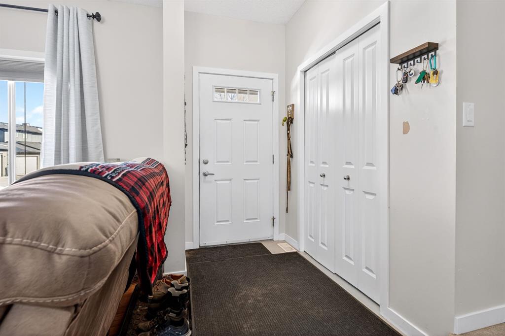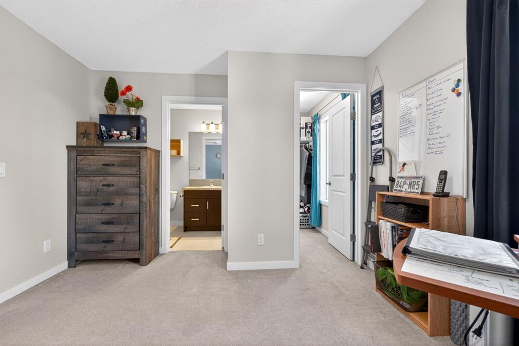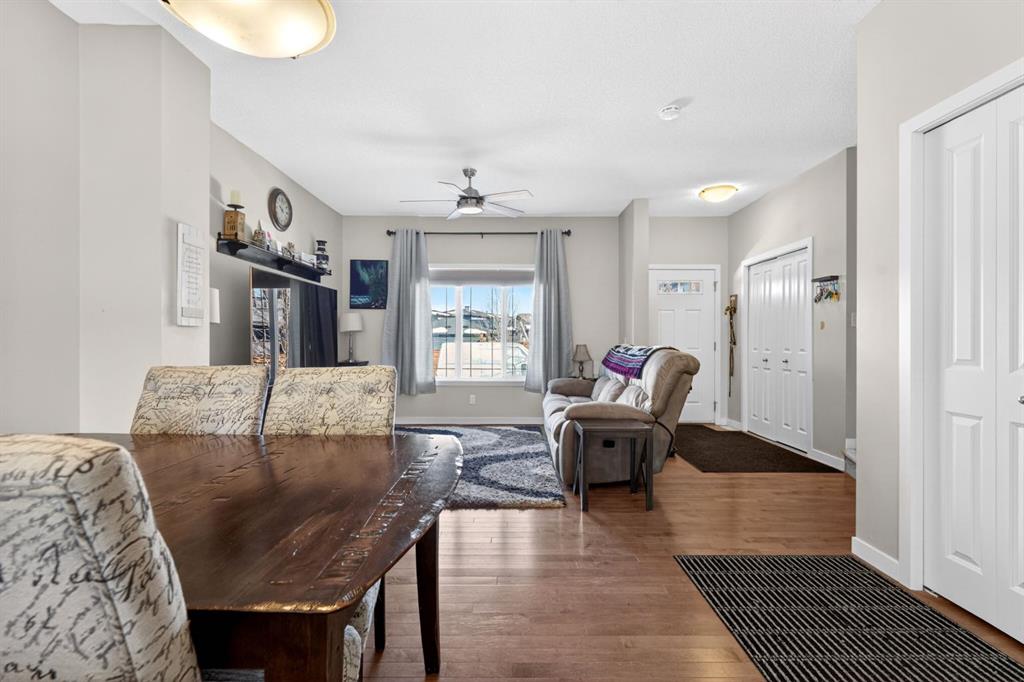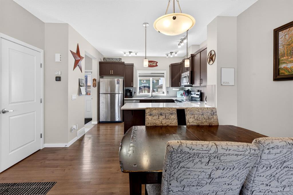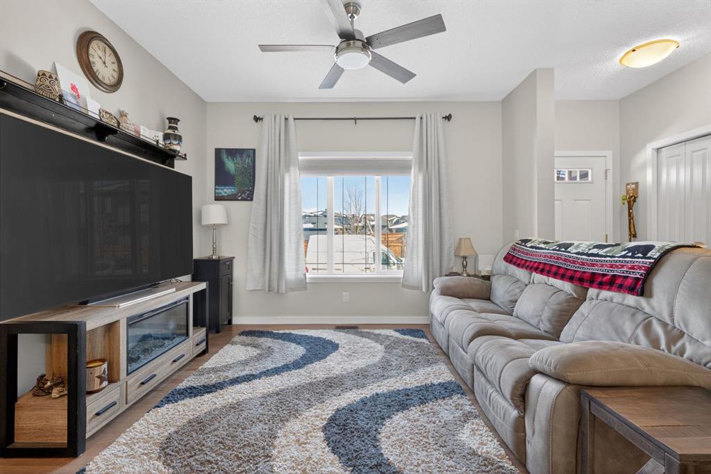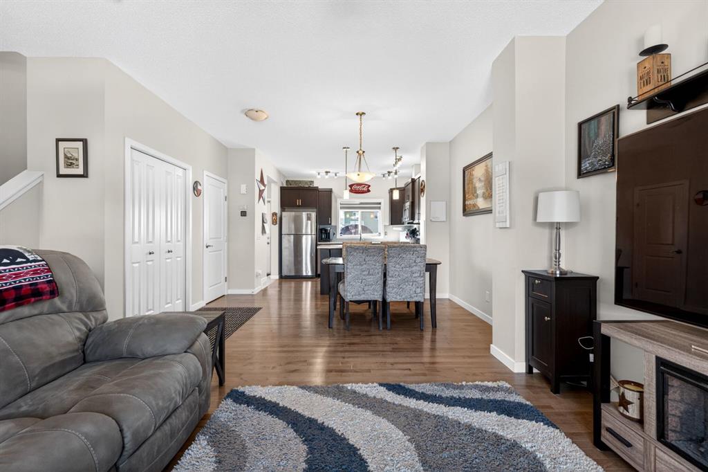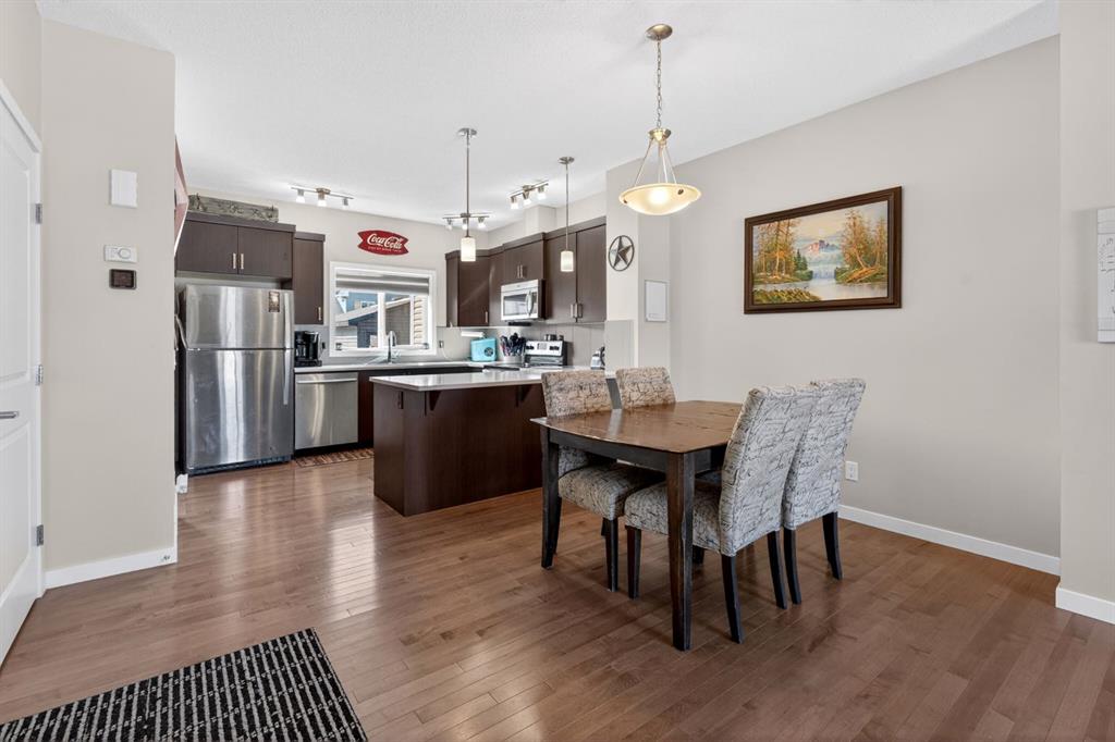 This two-bedroom townhouse in the Heartland subdivision is close to all amenities. It features both an ensuite bathroom and walk-in closets on the upper floor, along with a laundry area. The main level is open-concept, with a living room, kitchen with Granite countertops, and large dining area. There’s plenty of parking, and you can even build a double detached in the back alley, with parking right in front of the unit. The basement is undeveloped, with roughed in plumbing, offering lots of open space for your creative ideas. The Heartland subdivision is just west of Cochrane’s downtown, and it boasts beautiful walking paths, parks, and stunning views.