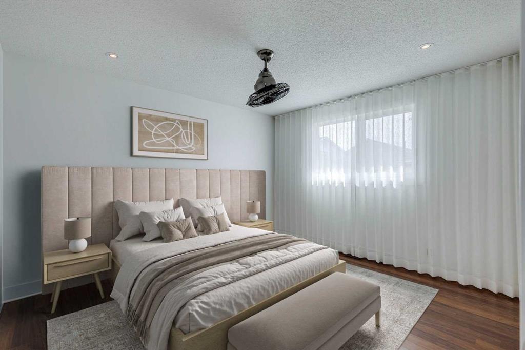 The bright and airy family room, flooded with natural light from large windows with designer floor-to-ceiling treatments, flows into a spacious dining area. The walk-through kitchen showcases a subway tile backsplash, updated appliances, a silgranit sink, and dimmer-controlled pot lighting. The primary bedroom easily accommodates a king-sized bed, while two additional bedrooms are perfect for family or guests. A fully renovated 4-piece bathroom with a soaker tub and modern fixtures completes the main floor. The partially finished basement provides a bonus room, ideal for an office or guest space. The rest of the basement is unspoiled, offering a blank canvas for your imagination. With a separate entrance and zoning for a legal basement suite, this space is perfect for investors, multi-generational living, or those seeking an income opportunity. Outside, the oversized lot is a rare find, offering both front and rear parking pads and plenty of room to build a massive garage. The fully fenced backyard, with mature landscaping and garden beds, is a private oasis, while the charming front and side yards provide additional space for a private patio. Conveniently located within walking distance of schools, parks, and amenities, with easy access to Stoney Trail, this home is an incredible value. Don’t miss the 3D Virtual Open House Tour, Upgrade List, and Floorplan for a closer look.
