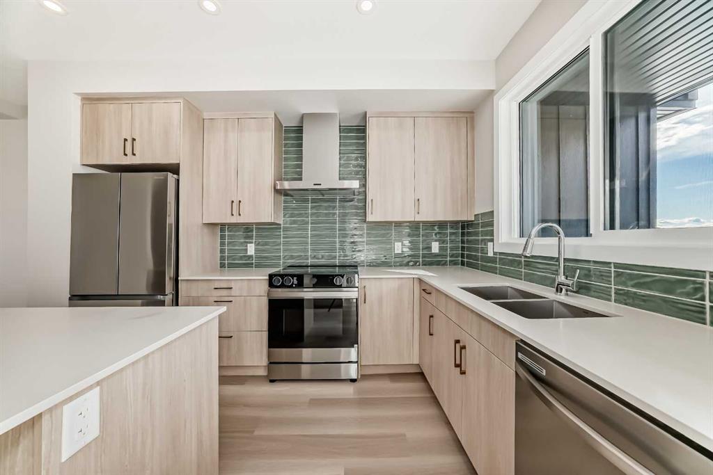 Only two townhomes remain in award-winning Logel Homes’ Livingston Views development. This 1,481 sq. ft. residence (builder size) features upgraded cabinetry, quartz countertops, and premium Samsung stainless steel appliances. With 3 bedrooms and 2.5 bathrooms, the spacious primary suite includes a walk-in shower and dual sinks in the ensuite. Both second-floor bathrooms are finished with upgraded ceramic tile. The main floor is enhanced with pot lighting throughout, complementing the modern design. Additional features include a double underdrive garage for added convenience. Enjoy year-round comfort with central air conditioning and the assurance of a 5-year Alberta New Home Warranty. Ideally situated near shopping, parks, and an on-site lake, this home offers the perfect blend of luxury and practicality. Livingston Views is a short walk from “The Hub”, Livingston’s 35,000 square-foot Homeowners Association facility, and surrounded by 250 acres of open space, parks, and prairies. All set along the picturesque Livingston West Ponds.