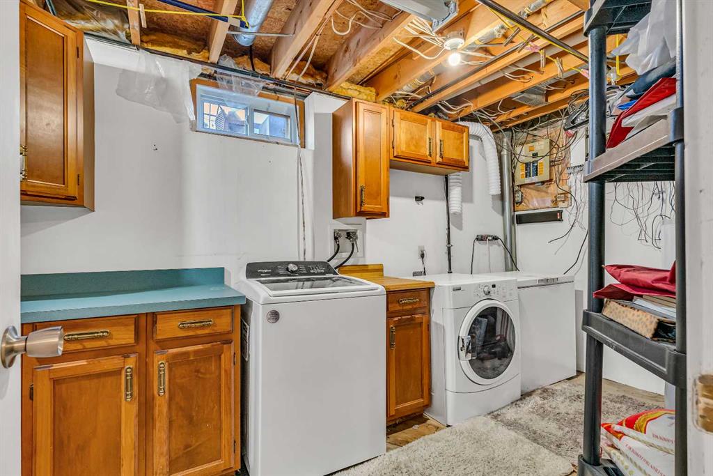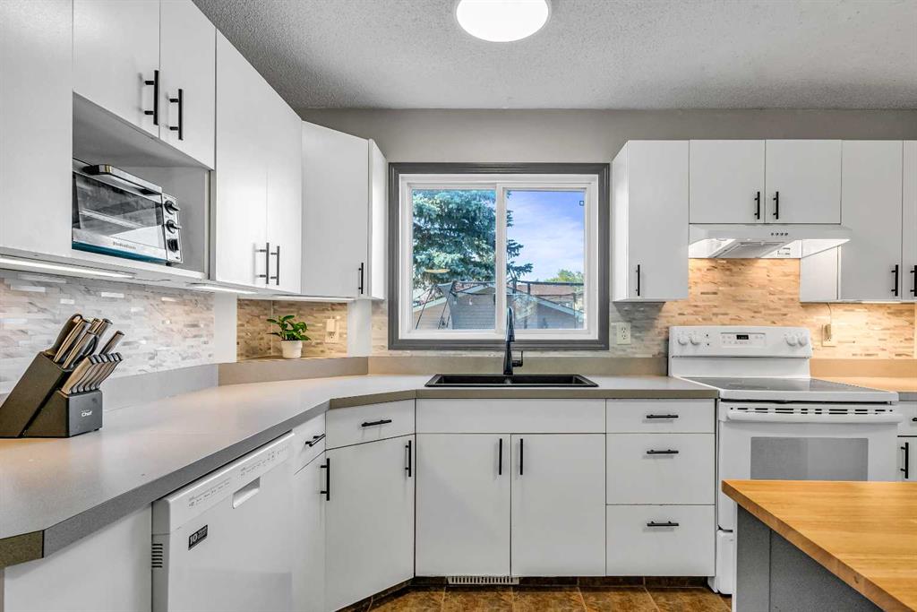 ***OPEN HOUSE SUNDAY, OCTOBER 5th 12-2PM*** Nestled on a QUIET CUL-DE-SAC in the heart of RIVERBEND, this inviting two-storey home combines a WEST-FACING BACKYARD, OVERSIZED DOUBLE GARAGE, and a FINISHED BASEMENT to deliver the space and flexibility families are looking for. The main level opens with a welcoming front living room that overlooks the quiet street, where an ELECTRIC FIREPLACE creates a relaxing retreat for everyday living. A defined dining area provides space to gather around the table, connecting easily to the updated kitchen. Here, crisp WHITE CABINETRY with BLACK HARDWARE, an ISLAND for casual meals, a NEW CRUSHED GRANITE SINK with stylish faucet, and expansive counter space make both cooking and clean-up effortless. A window over the sink frames views of the EXTRA-DEEP BACKYARD, while a tucked-away powder room has been refreshed with a NEW VANITY, BRASS FAUCET, and a striking FEATURE TILE WALL. A side entry offers convenient access to the yard. Upstairs, the 4pc bathroom showcases a FEATURE WALLPAPER, OVERSIZED VANITY for a fresh, stylish update. Three generously sized bedrooms offer room to grow, with two featuring TV MOUNTS AND INCLUDED TELEVISIONS. The FINISHED BASEMENT expands the living space for family activities with a large rec room anchored by a WOOD FEATURE WALL. This flexible level also includes laundry and mechanical space with storage, plus room for a future bathroom if desired. Step outside to a WEST-FACING BACKYARD designed for play and relaxation. Mature trees provide shade and character, while the EXTRA-DEEP LOT accommodates a WRAPAROUND DECK with durable RUBBER TILE and plenty of lawn space for kids and pets to play. The OVERSIZED DOUBLE GARAGE is a true highlight, INSULATED and HEATED with gas, finished with RUBBER TILE FLOORING and BUILT-IN SHELVES, and accessed from a PAVED LANE. Additional updates include an HE FURNACE, SHINGLES (2016), FRESH PAINT, LED LIGHT FIXTURES, NEW BATHROOM VANITIES AND TOILETS, and NEW APPLIANCES in 2025 including WASHER, DRYER, and STOVE. Riverbend is a highly desirable community known for its convenient access to GLENMORE TRAIL, BARLOW TRAIL, and DEERFOOT TRAIL, along with easy connections to the extensive PATHWAY SYSTEM along the BOW RIVER and the natural beauty of CARBURN PARK. Families will appreciate the nearby schools, playgrounds, and local shopping, while enjoying a quiet cul-de-sac setting just steps from a tot lot at the end of the street. This move-in ready home blends thoughtful updates, family-friendly function, and an exceptional location in one of Calgary’s most beloved communities.