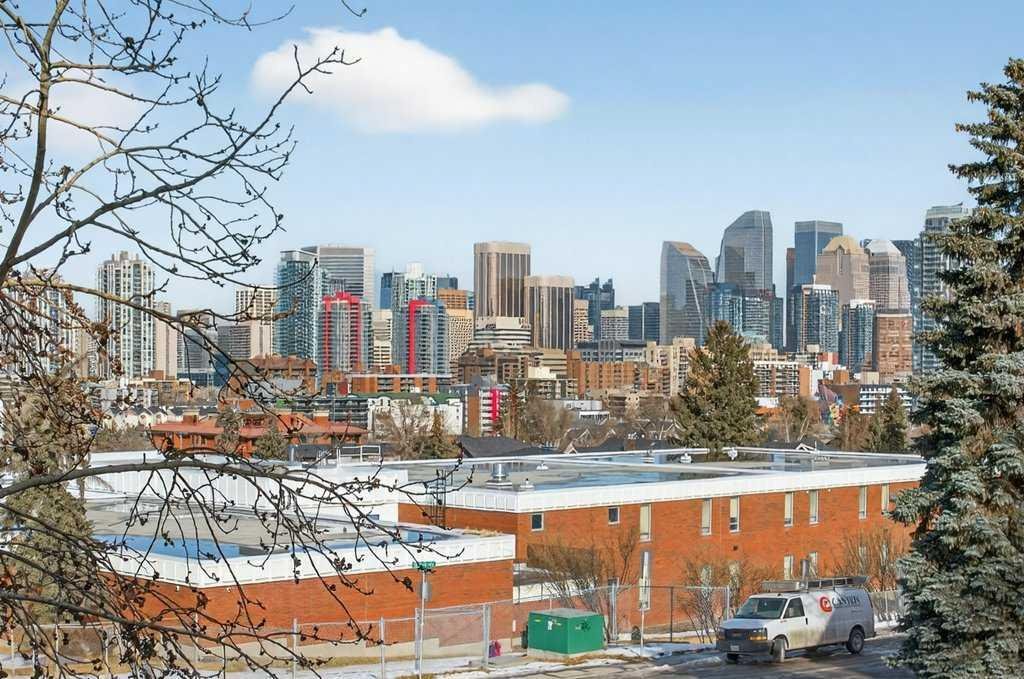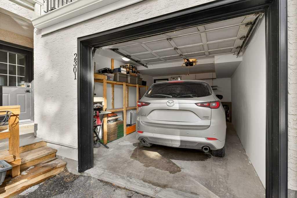 This townhome has been immaculately maintained and updated throughout. Recent upgrades include luxury vinyl plank flooring, designer carpet, fresh paint, a Lennox furnace, air conditioning, smart thermostat, humidifier, new hot water tank, and a full home repipe. Ground level includes the mechanical room with in suite laundry and direct access to a private garage with storage and workshop space. Second living level offers an open concept layout with a living room featuring downtown views and a dining area. The kitchen includes new stainless steel appliance package with refrigerator, stove, dishwasher, microwave and hood fan, along with a Moen pull down faucet. East facing windows bring in morning light and the west facing kitchen and balcony receive afternoon sun. The upper level includes a updated bathroom, primary bedroom with vaulted ceilings, downtown views and a large closet, and a second bedroom with vaulted ceilings. The home also includes a front patio with garden beds. The complex is pet friendly and well maintained. Located close to the shops and restaurants of 17th Avenue SW and Marda Loop.