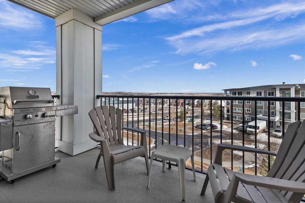 Welcome to Sage Place, nestled in the heart of Sage Hill, one of NW Calgary’s most sought-after communities, where comfort, convenience, and a true sense of neighbourhood effortlessly come together. This is your opportunity to own one of the larger floorplans in the complex, a bright, beautifully appointed corner unit designed for both everyday living and relaxed entertaining. From the moment you step into the private foyer, the thoughtful layout and elevated finishes make an impression. As a corner unit, this home is bathed in natural light, with expansive windows that create an open, airy atmosphere throughout the main living spaces. Premium laminate flooring runs through the principal areas, offering lasting durability and understated style, while the bedrooms provide a warm and cozy retreat underfoot. The kitchen is the heart of this home, featuring granite countertops, full-height cabinetry, and a premium stainless steel appliance package that blends functionality with sophistication. Whether you are hosting friends for a dinner party or savouring a quiet morning coffee, the oversized dining area & generous living room offer the perfect setting to gather, relax, and connect. Step through the sliding doors onto your large private deck, complete with natural gas for the BBQ, an ideal extension of your living space, perfect for summer evenings, weekend grilling, or simply unwinding after a long day with a glass of wine in hand. The floorplan includes two spacious bedrooms plus a versatile den. The primary retreat features a private 3-piece ensuite and dual his & hers closets, delivering both comfort and practical everyday storage. The second bedroom is thoughtfully positioned adjacent to the full 4-piece bathroom, making it ideal for guests, family. The spacious den adds exceptional flexibility, whether you envision a home office, a personal workout space, or occasional guest accommodations, it easily adapts to your lifestyle needs. Rounding out this exceptional package is titled underground heated parking and assigned storage in a secure parkade, offering year-round comfort and genuine peace of mind. Living at Sage Place means embracing a lifestyle of convenience. Just steps from your door you will find grocery stores, banking, fitness studios, restaurants, pubs, and all the everyday amenities you need, making daily errands seamless and evenings out a breeze. Quick access to major roadways means commuting anywhere in the city is simple & stress-free. Sage Hill delivers, scenic pathways, beautiful green spaces, and a warm, welcoming community that residents are proud to call home. Whether you are a young professional seeking a stylish, low-maintenance base in a well-connected neighbourhood, a first-time buyer stepping, a downsizer seeking a relaxed lifestyle, or an investor adding a quality asset to your portfolio, this immaculate professionally managed condo offers the space, the light, and the lifestyle you have been searching for.