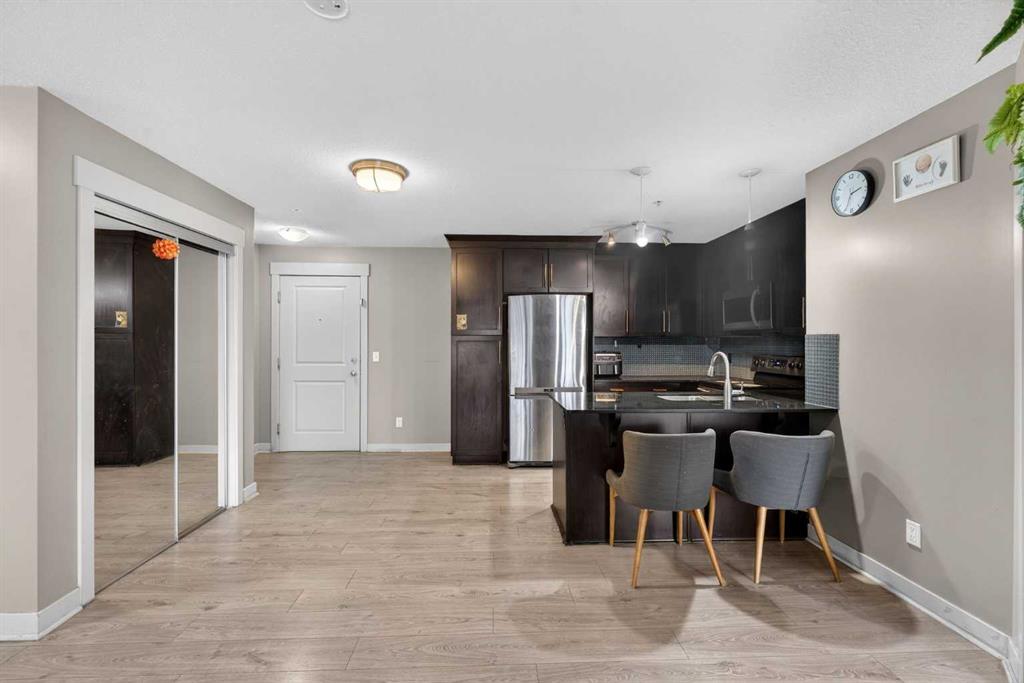 Welcome to this stylish 2-bedroom, 2-bath condo in Skyview Ranch. It’s a must-see! Built in 2012, this bright and well-maintained unit features an open-concept layout with an upgraded kitchen, stainless steel appliances, modern cabinetry, and a large island—perfect for entertaining. Enjoy a private balcony, in-suite laundry, and the rare convenience of two titled parking stalls. The spacious primary bedroom offers a walk-through closet and private ensuite, while the second bedroom is ideal for guests, a home office, or roommates. Located close to schools, parks, shopping, and transit, with quick access to Stoney Trail and Deerfoot Trail—just 10 minutes to the airport and 20 minutes downtown. Whether you’re a first-time buyer, downsizing, or investing, Don’t miss out—book your private showing today!