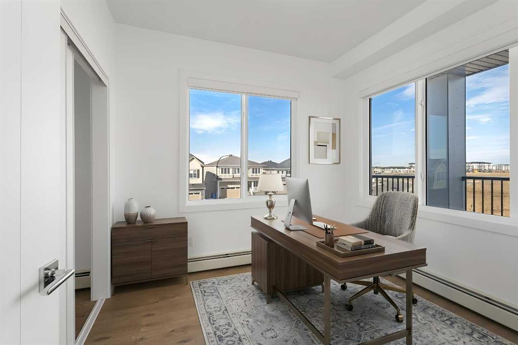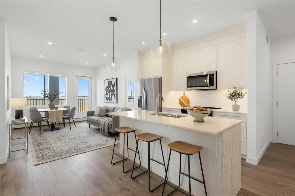 Welcome to this bright and beautifully finished corner unit in the family-friendly community of Cityscape. Offering a rare 3-bedroom, 2-bathroom layout and an oversized north-facing balcony, this home perfectly blends comfort, functionality, and everyday convenience. Inside, you’ll find elegant LVP flooring throughout and oversized windows that flood the space with natural light. The open-concept kitchen, dining, and living area creates an inviting environment for both daily living and entertaining. The primary bedroom features a private 3-piece ensuite, while two additional bedrooms and a full bathroom provide excellent flexibility for families, guests, or a home office. In-suite laundry adds to the overall convenience. Residents also enjoy access to premium amenities including a fitness centre and owner’s lounge—perfect for your daily workout or hosting larger gatherings. Step outside to the spacious balcony, ideal for relaxing, summer BBQs, or unwinding at the end of the day. Located in one of northeast Calgary’s fastest-growing and well-planned communities, Cityscape offers future school development, parks, and pathways—making it a great choice for families planning ahead. Major amenities including CrossIron Mills, Costco, Calgary International Airport, Stoney Trail, and Métis Trail are all within a convenient 15-minute drive.