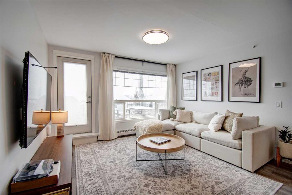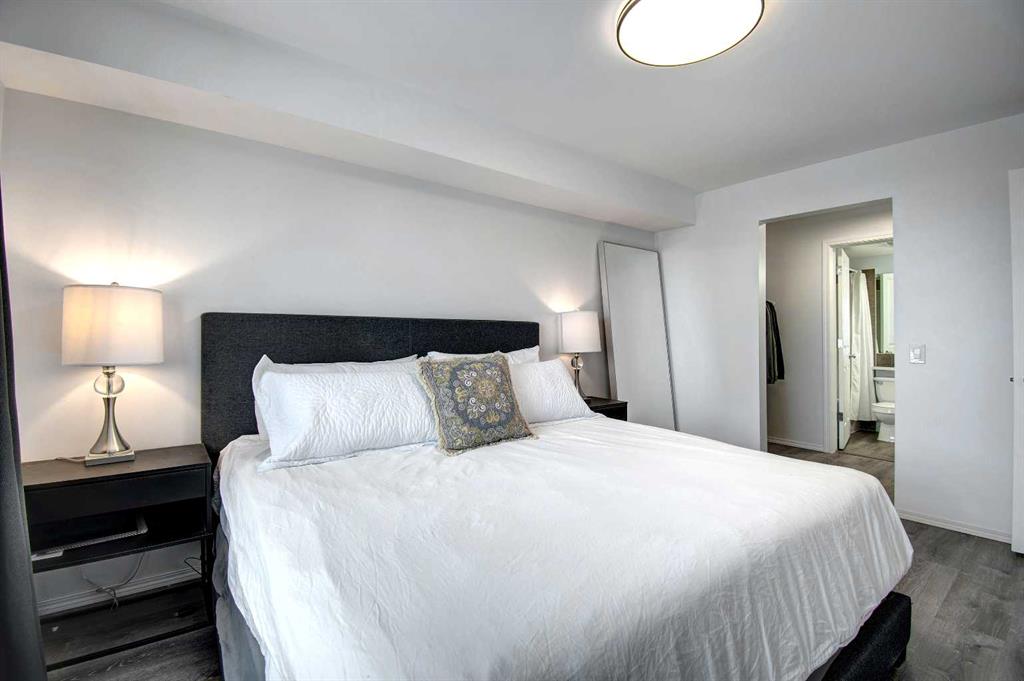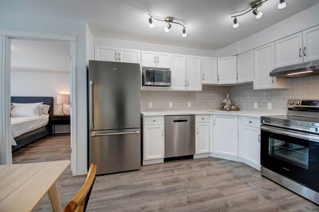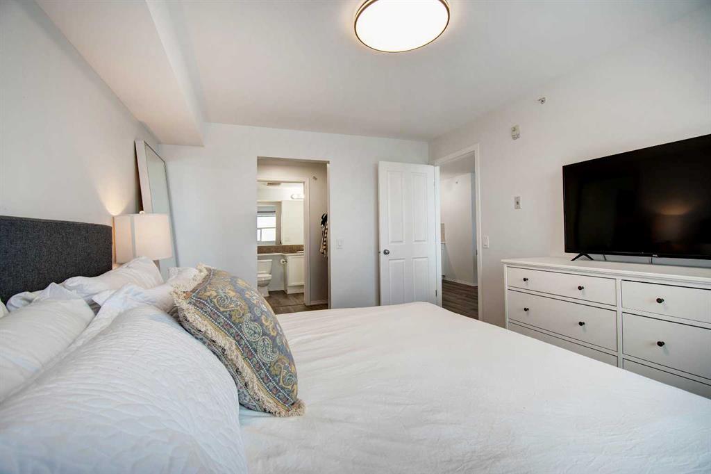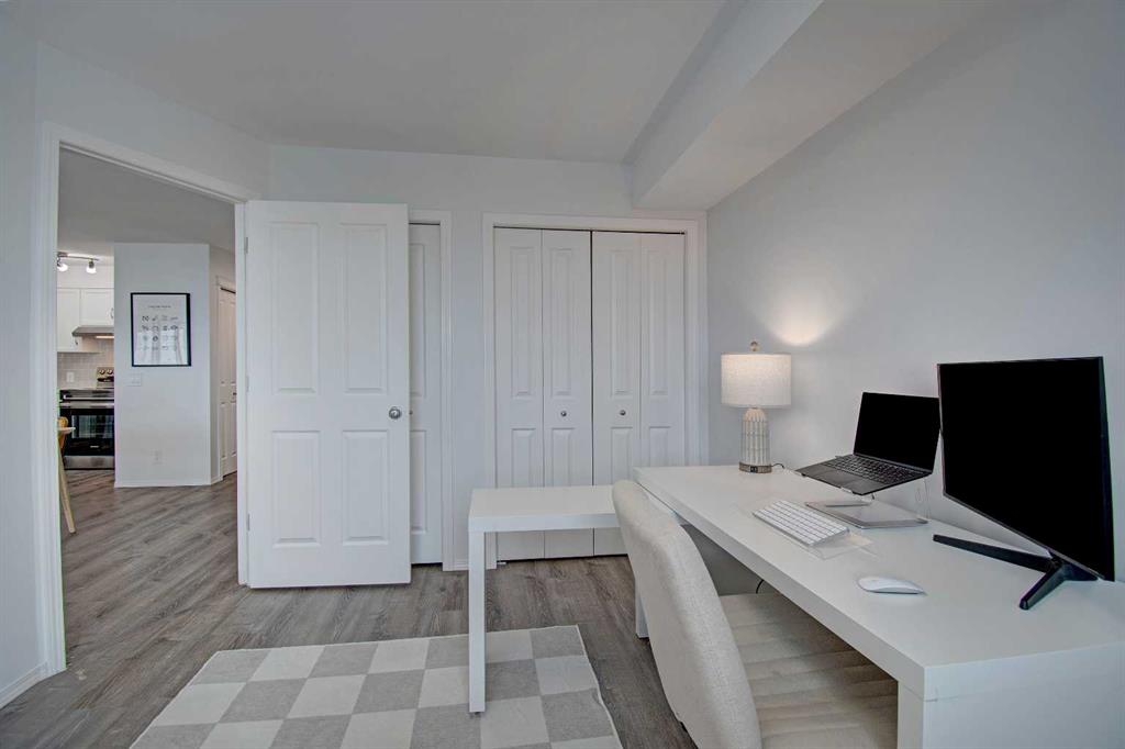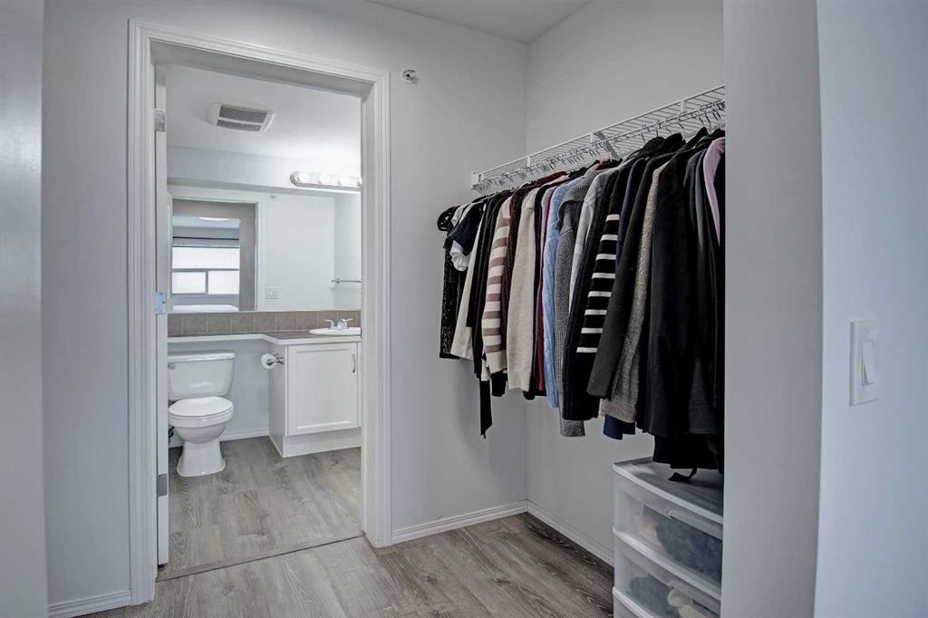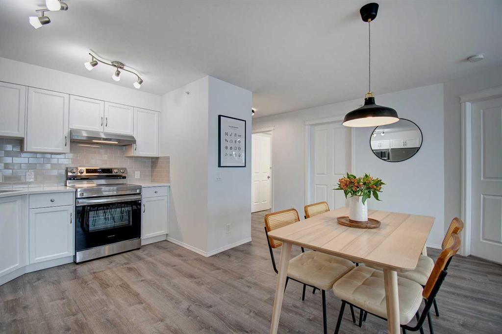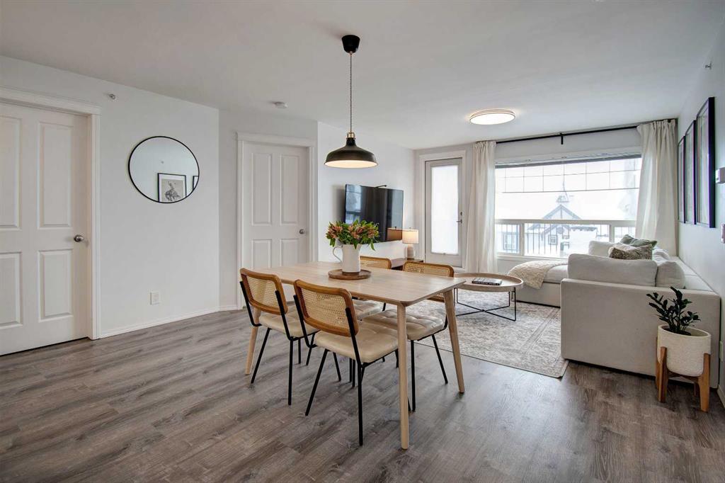 Welcome to Sage in NW Airdrie! This cozy top floor, South-facing unit has been thoughtfully updated and renovated and is move-in ready. Enter the open concept living/dining/kitchen and the first thing you notice is the huge windows overlooking the deck. Updated flooring and fresh paint add to the cozy feel. The updated kitchen includes lots of cabinet space, newer countertops, and updated appliances. The living/dining space easily fits a full-sized table and sectional without feeling crowded. A door off the living room leads to the over-sized deck with plenty of space for a patio set and barbeque. The primary bedroom is bright and sunny and large enough for a king-sized bed! A walkthrough closet leads to the 4-piece ensuite. Across the apartment, a second bedroom is currently being used as an office, with a large closet and easy access to the second 4-piece bathroom. The oversized laundry room off the main living space provides a stacked washer/dryer plus plenty of space for additional storage.