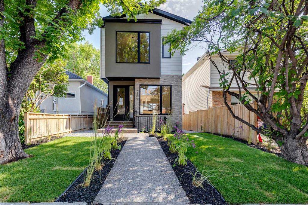 Mazon Designs proudly presents “The Richmond,” a custom-built home situated on a premium south-facing lot in the heart of the highly sought-after Richmond/Knobhill community. Showcasing over 2,300 sq. ft. of thoughtfully designed luxury living space, this exceptional residence spans three fully finished levels, each appointed with high-end upgrades and meticulous attention to detail. The open-concept main floor impresses with soaring 10’ ceilings and 8’ interior doors, creating a bright and expansive atmosphere. A full-sized dining area seamlessly connects to the chef-inspired kitchen, highlighted by a stunning 10’ island with seating for six, floor-to-ceiling custom cabinetry, quartz countertops, a gas range, and premium plumbing and lighting fixtures. The adjoining great room features a striking porcelain tile fireplace with custom media cabinetry, while a wall of glass opens onto an oversized, south-facing deck, complete with gas BBQ hookup—perfect for indoor-outdoor living. A conveniently located powder room and a private mudroom with direct access to the yard and garage complete this level. Upstairs, a beautifully designed staircase with glass railings and in-step lighting leads to a bright second floor with 9’ ceilings. This level offers a full laundry room, a stylish 3-piece bath, and two generously sized bedrooms, each with walk-in closets. The luxurious primary suite is a true retreat, featuring a dramatic multi-vaulted ceiling and a spa-inspired ensuite that must be seen to be fully appreciated. The fully developed lower level maintains the same standard of quality, offering 9’ ceilings, in-floor heating, a spacious bedroom (ideal for guests, a home office, or gym), and a 3-piece bath. The expansive family room includes additional cabinetry, a sink, and a beverage fridge—perfect for a home theatre or children’s play area. Additional highlights include a double detached garage with convenient lane access, fully drywalled, insulated, and pre-wired for an EV. Notable upgrades include glued and screwed flooring (no nails), a 70-gallon hot water tank, water softener, R-40 spray insulation in cantilevers, waterproofed basement walls with protective membrane, reinforced basement slab with additional rebar, sump pump, and a dedicated water line for a future hot tub. The property is fully landscaped front and back. Carefully designed and built around two mature 70-year-old trees, the home offers both natural beauty and enhanced curb appeal. Ideally located just steps from a park, within walking distance to the shops and restaurants of 17th Avenue, and only minutes to downtown. Move in at your convenience—possession is flexible. This home offers exceptional value, priced below replacement cost, and includes GST, a new home warranty, and a one-year builder’s door-to-door warranty. Unmatched quality! Unbeatable value!