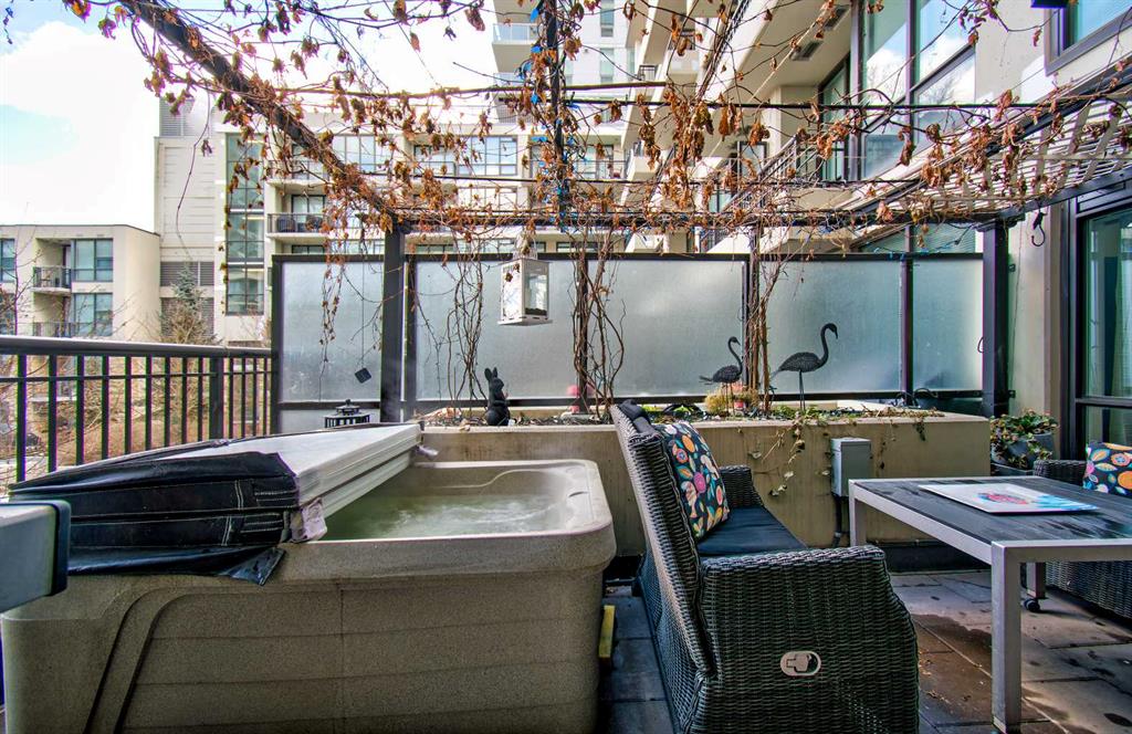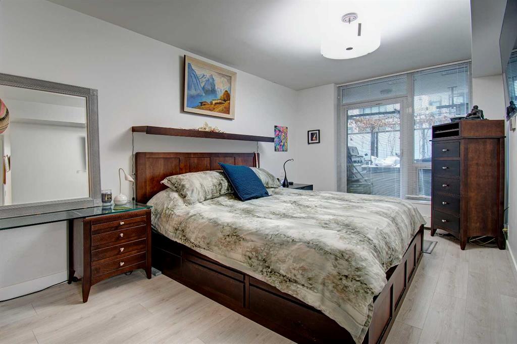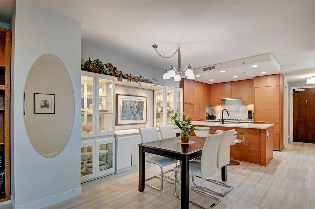 FINALLY, IT IS HERE FOR YOU!! WELCOME TO THIS EXQUISITE LUXURY CONDOMINIUM IN THE PRESTIGIOUS “WATERFRONT”. Unparalleled Living Experience in The Heart of The City. This Unit Makes It Perfect for Entertaining Guests or Enjoying Quiet Evenings at Home. OFFERING YOU SECURITY AND SAFETY SITUATED BETWEEN CALGARY’S DOWNTOWN CORE AND PRINCE’S ISLAND PARK. THIS IS A CONCRETE BUILDING With High End Finishes and Luxurious Amenities; Cleanliness Is The Motto Here. Concierge Service From 8:00am To 8:00pm Daily. Well Appointed Fitness Centre, Relaxing Hot Tub and Rejuvenating Steam Room, Party Room, Bicycle Storage and Awesome Theatre Room for Residents Use. Building Offers a Stylish Meeting Or Gathering Room Perfect for Hosting Events. UNIT HAS 9 FT CEILINGS AND THE COMFORT OF CENTRAL AIR. The Unit Features 2 BEDROOMS, 2 FULL BATHROOMS, Nice Closet Spaces. Primary Bedroom (Room for King Size Bed) With 4 Pc Ensuite. The Modern Kitchen Features Sleek Cabinetry, Pantry, High-End Stainless-Steel Appliances, Gas Top Stove and Ample Quartz Counterspace for Meal Preparation Featuring Dual Sinks. The Adjacent Dining and Living Room with Gas Fireplace Beckons You to Relax. THERE ARE PATIO DOOR EXITS FROM BOTH THE PRIMARY BEDROOM AND THE LIVING ROOM TO A LARGE BALCONY WHERE YOU ENJOY THE VIEW OF THE IMPRESSIVE OUTDOOR COURTYARD. BALCONY HAS OVERHEAD HEATING LAMPS PLUS GAS OUTLET FOR BBQ. The IN-SUITE LAUNDRY Completes The Unit Space with The Stacked Washer & Dryer to Stay. Separate Assigned Storage Locker On Same Floor as Unit as Well As A Private Guest Suite #253. BONUS: TWO ASSIGNED UNDERGROUND AND HEATED PARKING STALLS #697 AND #883 (RARE FIND). THERE IS VISITOR HEATED UNDERGROUND PARKING ON LEVEL P1 AS WELL AS 2 CAR WASH BAYS. With Easy Access to The Extensive River Walking Pathway System. If You Are Looking for A Special Retreat, Privacy and Safety – This Is It and You Can Proudly Call This Your Home. QUIET, SECURE BUILDING WITH SO MANY AMENITIES!! THE BEST OF URBAN LIVING. (See Video of This Listing!)