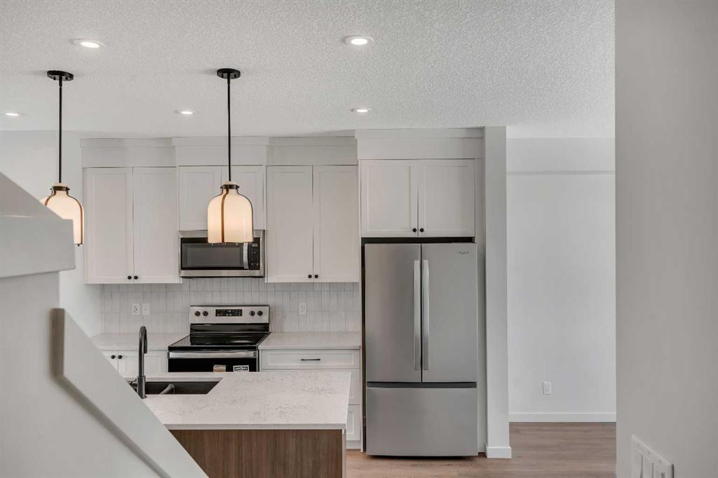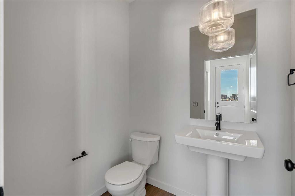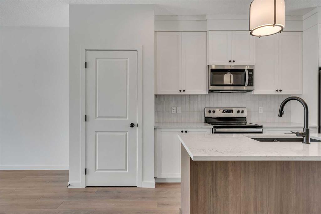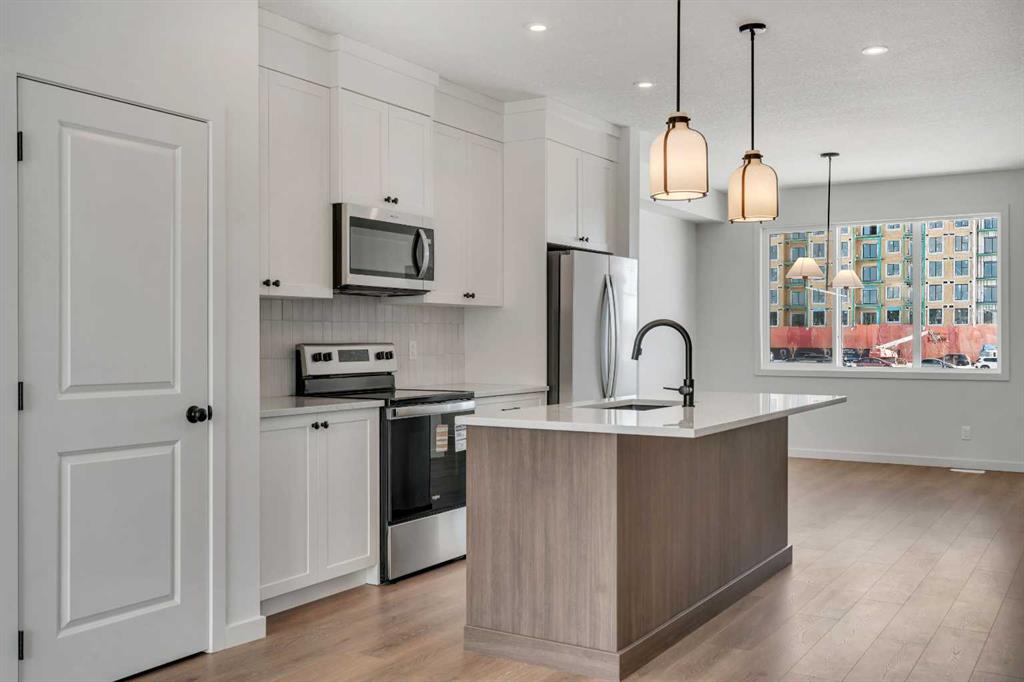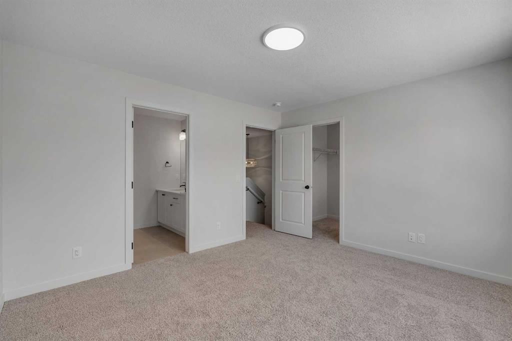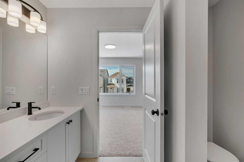 Welcome to 231 Bartlett Crescent SE, a stunning and contemporary haven nestled in the vibrant community of Rangeview. This bright and spacious home offers a seamless blend of modern design and functional living. Step through the inviting front porch into the sun-drenched open-concept great room, where expansive windows bathe the space in natural light. At the heart of the home is the beautifully designed center kitchen, featuring cabinets extended to the ceiling, a large central island perfect for casual dining and entertaining, and designer-curated finishes throughout, including quartz countertops, a silgranit sink, and sleek black plumbing fixtures.  Upstairs, retreat to the expansive primary bedroom, a true sanctuary complete with an upgraded ensuite featuring double sinks, a glass shower, and a spacious walk-in closet offering ample storage. The upper level also includes a convenient laundry room, a full bathroom, and generously sized additional bedrooms, perfect for family living or hosting guests. The basement includes a 3-piece rough-in, offering excellent potential for future development. Additional thoughtful upgrades include a side door entrance with upgraded laminate landing, providing flexibility for future basement access or separate living space. A separate traditional rear entrance can be used for direct access to the yard and future garage. Enjoy outdoor living with an east-facing backyard, ideal for morning sun and relaxing evenings. Perfectly situated in the growing community of Rangeview, this home is just steps from the future Commercial Village, Harvest Hall, and Community Greenhouse—connecting you to convenience, culture, and a vibrant community lifestyle.