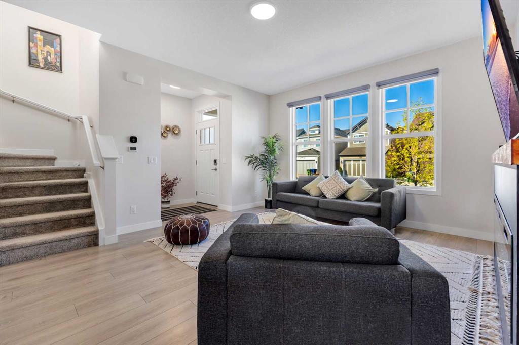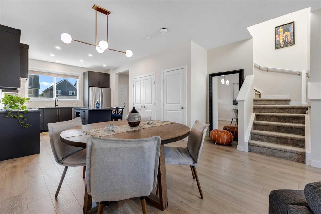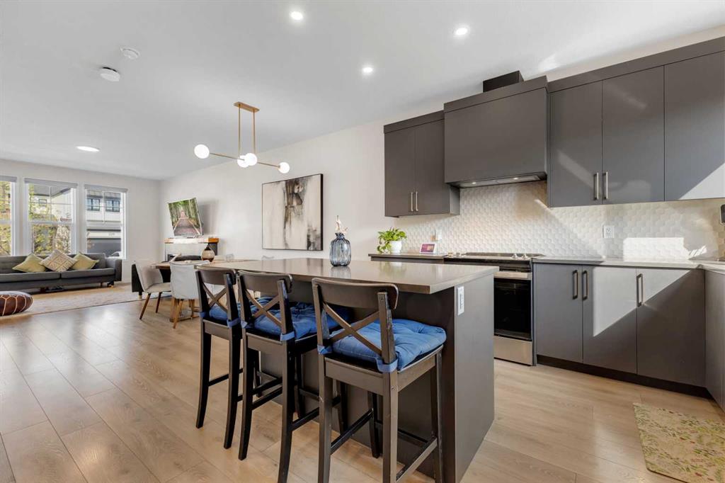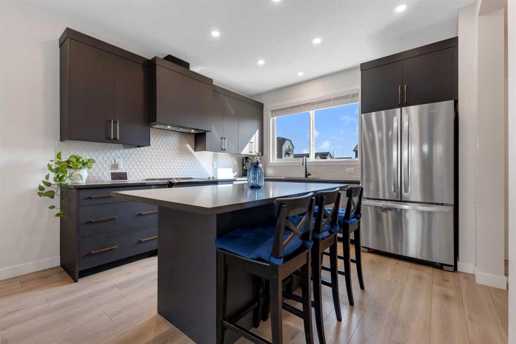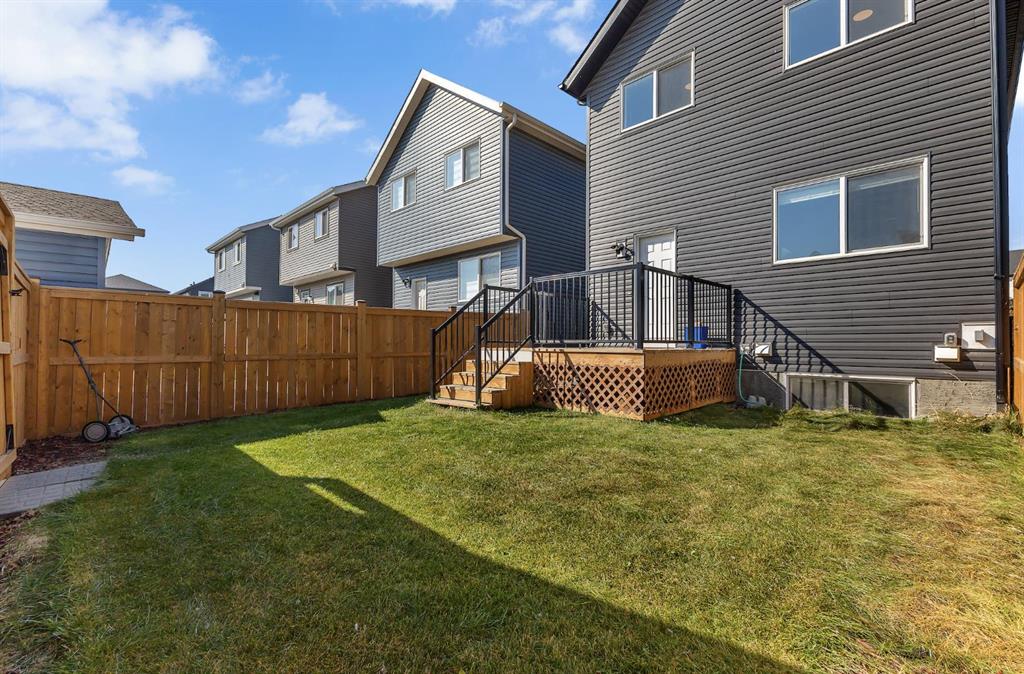 4 BEDROOMS|3.5 BATHROOMS|FULLY DEVELOPED BASEMENT WITH SIDE ENTRANCE|FULLY LANDSCAPED. Situated in the innovative and vibrant community of Rangeview, this beautifully designed, open-concept home combines modern style with everyday comfort. With over 2,000 sq. ft. of developed living space, high-quality finishes, and thoughtful upgrades throughout, this home is sure to impress. Step inside to 9′ ceilings and luxury vinyl plank flooring that flow seamlessly across the main level. The spectacular kitchen is masterfully designed for efficiency and entertaining. Featuring quartz countertops, upgraded stainless steel appliances, built-in microwave, a stylish chimney hood fan, and a sprawling island. The kitchen flows seamlessly into a spacious dining area and living room, complete with a cozy fireplace, ideal for gatherings and relaxation. A convenient powder room and mudroom complete the main floor. Upstairs, the second floor continues to impress with a convenient laundry room and a 4-piece main bathroom, serving two versatile secondary bedrooms. The primary suite offers a cozy and intimate retreat with a thoughtfully designed walk-in closet and a luxurious 3-piece ensuite with quartz countertops, a spacious upgraded shower with sliding glass door, and modern finishes. The fully developed basement, with its own side entrance, expands your living options with a large family room, 9′ ceilings, a spacious bedroom, and a full 4-piece bathroom — perfect for guests or extended family. Step outside to your fully landscaped backyard, complete with a rear deck, full fencing, and a rear gravel parking pad with a double covered parking shelter. Additional features include triple pane windows, tankless hot water heater, BBQ gas line, solar panels (owned outright), and smart home technology solutions. This home is ideally positioned on a quiet street and is less than a 2-minute walk to a future school, parks, and walking paths, making it a fantastic choice to call home. Rangeview is a vibrant, family-oriented community designed around garden-to-table living. Here, you’ll find community gardens, orchards, and greenhouses woven together with parks, playgrounds, and scenic pathways.