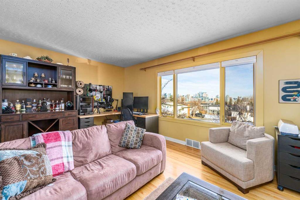 Situated in Richmond, the desirable inner-city community, this spacious 2,800 square foot raised bungalow offers a magnitude of opportunity. Perched on an elevated lot offers truly spectacular, unobstructed panoramic views of the downtown. From the main living areas to the lower level, the city skyline becomes part of your everyday backdrop. Even the basement bedroom enjoys stunning city views, a rare and remarkable feature that makes this home and lot stand out from the rest. This home is full of warmth and character, from the artisan created tile kitchen backsplash, beautiful and sunny large 570 sq ft back family room, new (2025) 22’x23’ garage blending timeless charm with thoughtful updates. The kitchen features stainless steel appliances, a gas stove, and a very functional layout with direct views into the sunny west facing backyard. The substantial garage is a standout, equipped with 200-amp electrical service, heater, sloped roof line making it ideal for a workshop, hobby space, or car enthusiast. Additional upgrades include new triple pane windows almost throughout, furnace replaced in 2020 and a previous single car front drive garage converted to storage. This storage space could be converted to additional living space, or 4th bedroom. Whether you call this home, renovate or rebuild you will enjoy the unmatched downtown views, character-filled details, and flexible living options, this Richmond property is a rare opportunity in one of Calgary’s most sought-after inner-city communities. Open houses are being held both Saturday and Sunday, come and take a look!