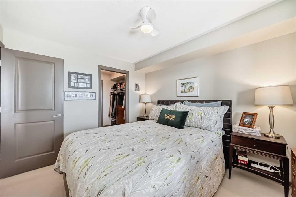Fantastic opportunity to own in this better built, luxury 18+ building and enjoy the small town feel of charming McKenzie Towne. Located steps to High Street (many shops, restaurants and services), BRT (public transit) and a block from Inverness Pond and great walking paths, this corner unit has everything you need. A great floor plan with open kitchen, living and dining rooms, and bedrooms on either side of the main living space for privacy. There is lots of in suite storage areas as well as an additional private storage space out of the unit beside your titled parking stall. Large rooms mean lots of space even for wheelchair users. This building gets you better sound proofing and in floor, radiant heat which is great for asthma and allergy sufferers and generally less dusting to do. A good sized balcony has great views to the east and south as well as a gas BBQ hook up. The building has a peaceful, friendly, community vibe and the plush lobby is a great place for neighbourly chats and visits. Lots of visitor parking available just outside the lobby doors. The neighbourhood community center is a few minutes walk away and offers a multitude of activities for all ages and abilities that are free for residents. A great way to stay fit, socialize and make friends! Such a great building near so many amenities! Please check out the photos for more features of this great 2 bed, 2 bath home.