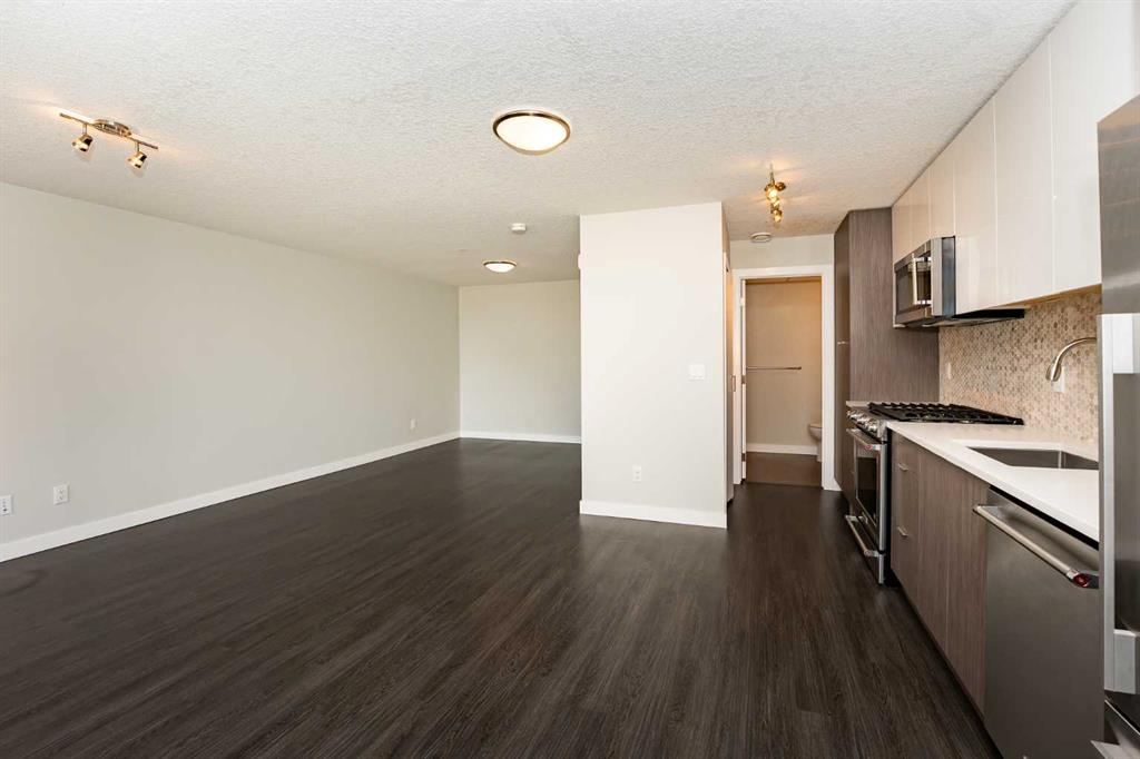 LIMITED TIME OFFER! This thoughtfully designed 473-square-foot residence is priced to move and presents an exceptional opportunity for first-time buyers or savvy investors alike. The efficient open layout maximizes every inch of space and includes a private front porch, perfect for enjoying your morning coffee or unwinding in the evening. Built with durable concrete construction, the unit offers superior soundproofing and energy efficiency, while the modern kitchen features quartz countertops and gas appliances for everyday luxury. Condo fees include select major utilities, providing long-term cost savings and added value. While there is no enclosed bedroom, the flexible layout allows for a designated sleeping area, commonly enhanced with room dividers or curtains, and is included in the overall square footage. Additional features include assigned underground heated parking, a separate storage locker, bike storage, and access to a shared car wash. Ideally located just 10 minutes from downtown and within walking distance to Mount Royal University, Currie Barracks offers strong rental demand, excellent walkability, nearby parks and amenities, and long-term appreciation potential—opportunities like this are rare and won’t last.