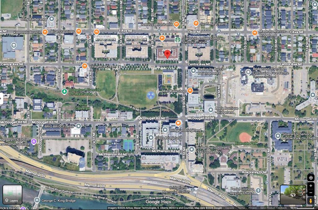 Enjoy a prime Bridgeland location, directly across from a park that hosts a popular weekly summer farmers’ market, and just a short walk to river pathways, the C-Train, local restaurants, and Starbucks.