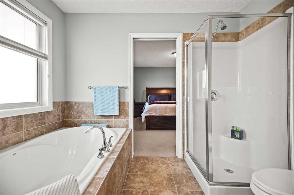 Step inside to a bright, open-concept main floor featuring a welcoming family room with a cozy gas fireplace, a spacious kitchen with pantry, and a convenient main floor laundry with garage access. Upstairs, unwind in the generous bonus room—perfect for movie nights, playtime, or your home office retreat. The large primary bedroom with 4-piece ensuite including a soaker tub and free standing shower, is a perfect oasis to unwind and relax after a long day.