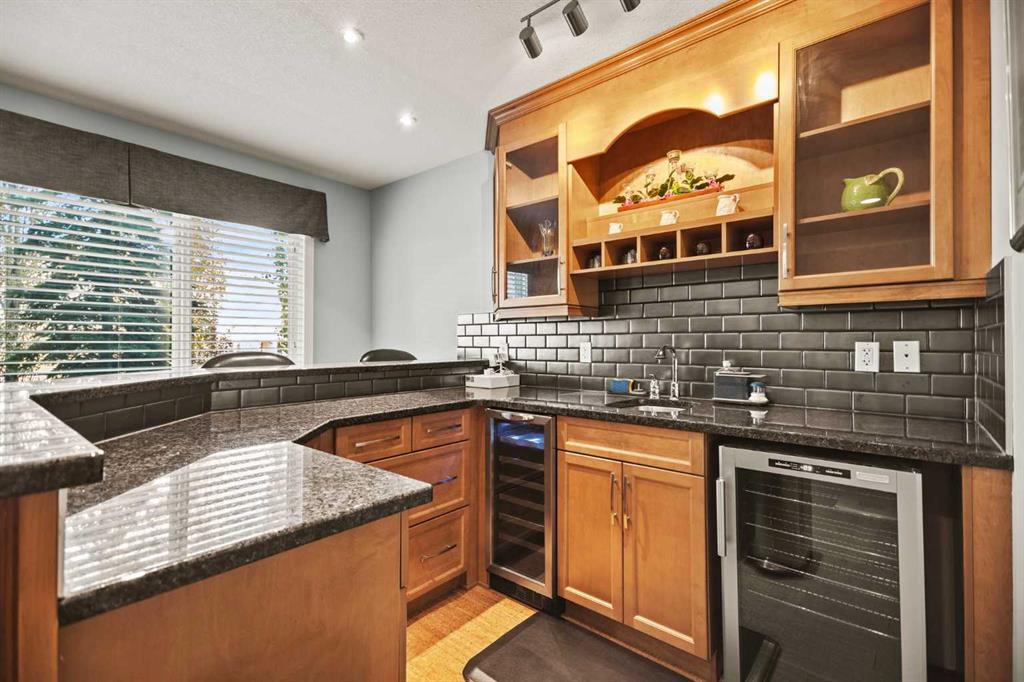 The fully finished walk-out basement is made for entertaining, complete with a stylish wet bar including a bar fridge and wine fridge, a second gas fireplace, and direct access to the beautiful greenspace out back—ideal for kids, pets, or simply soaking up peaceful Cochrane sunsets.
