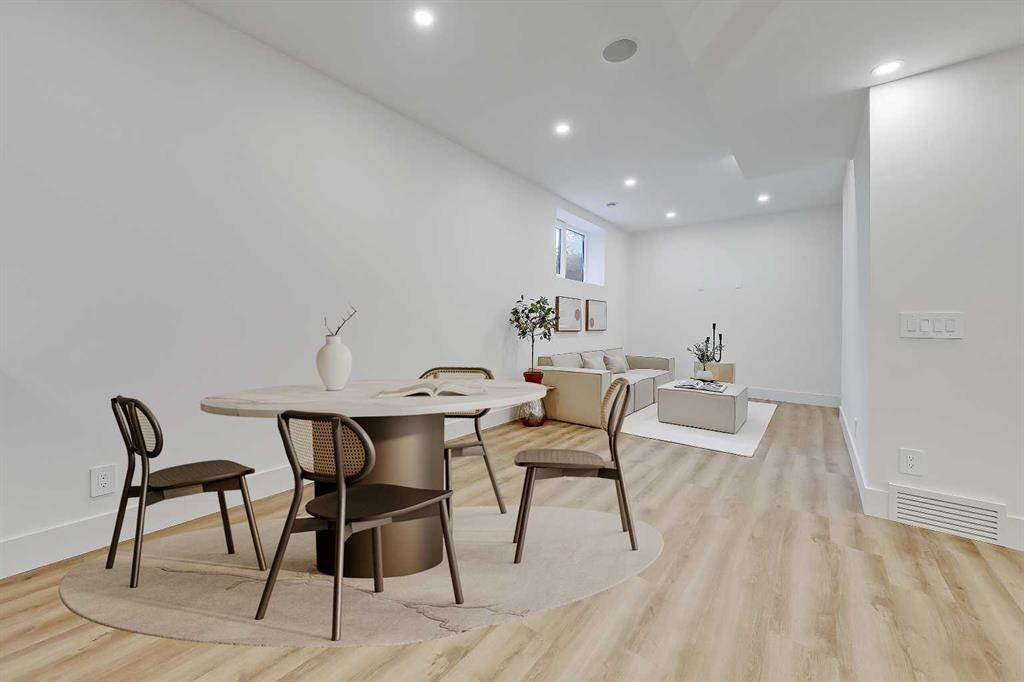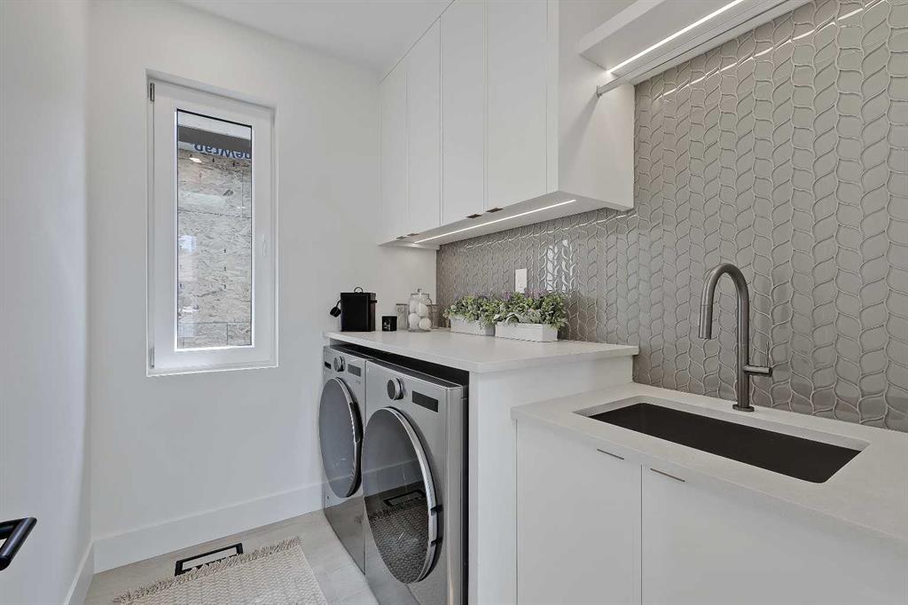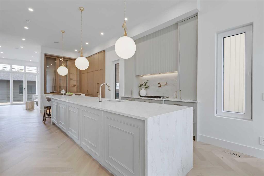 **Ease the transition into your new luxury infill!** In the heart of NORTH GLENMORE PARK, this exquisitely designed MOVE-IN READY LUXURY DETACHED INFILL from BLACK LABEL DESIGNER HOMES stands apart with refined architecture, elevated finishes, and a layout that perfectly blends function and beauty. Every detail feels considered — from the rich material palette to the sophisticated flow of each space — all tucked onto a quiet street near parks, schools, and the golf course. The entry sets the tone with wide-plank HERRINGBONE ENGINEERED HARDWOOD and a full-height glass door with a built-in bench with custom mitered details in the coat closet and lower drawers. A front dining room offers a more formal space, while the central kitchen feels like a showpiece — layered with full-height cabinetry, custom built-ins, and a sculptural ROUNDED ISLAND wrapped in quartz. The upgraded JENNAIR APPLIANCE PACKAGE includes a gas cooktop, wall oven, and panelled fridge, paired with a stunning BLANCO SINK, pot filler, and integrated LED UNDERMOUNT and SKIRT LIGHTING (also found throughout the home). The living room at the rear is bathed in natural light, featuring an elegant gas fireplace with a custom porcelain, two-tiered mitre mantle and built-in shelving. Around the corner, a functional mudroom leads to the double garage, adding daily convenience with bench seating and ample storage, and the powder room is a true statement curved vanity and designer lighting. Upstairs, the vaulted primary suite features OPEN WOOD BEAMS, oversized windows, and a walk-through closet with built-in millwork. The ensuite is pure luxury — HEATED FLOORS, a freestanding soaker tub, dual vessel sinks, quartz counters, a STEAM SHOWER w/ BODY JETS, and a skylight overhead. All bathrooms throughout the home offer IN-FLOOR HEAT and VOVO SMART BIDET TOILETS, including the main upper bath with WOOD SLAT FEATURE WALL and vessel sink, while the laundry room is finished with quartz counters, designer tile backsplash, custom cabinetry, and a hanging rod. Two good-sized secondary bedrooms with herringbone hardwood and walk-in closets offer space for the whole family! The basement is fully developed with a rec room, fourth bedroom, full bath, and a statement WET BAR with its own island, dishwasher, and bar sink! And a TANKLESS WATER HEATER ensures comfort throughout the seasons. North Glenmore Park is one of Calgary’s most desirable inner-city communities — offering a rare mix of tranquility and convenience. Surrounded by mature trees, top-rated schools, and endless green space, the neighbourhood is just steps from Glenmore Athletic Park, Sandy Beach, and the Elbow River Pathway. You’re walking distance to North Glenmore Park School and Central Memorial High School, with quick access to Mount Royal University, Lakeview Golf Course, and shops and restaurants in Marda Loop. Easy connections to Crowchild, Glenmore, and Sarcee Trail make commuting seamless in every direction.