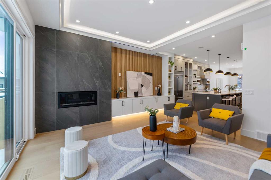 Welcome to 2325 53 Avenue SW — A brand new home with over 3000 sqft of developed space with south facing backyard that brings you luxury, everyday comfort, and convenience. You’re welcomed by a bright dining area with a chandelier and a large window for natural light that connects to the main floor featuring a 10-foot ceiling, a well-equipped gourmet kitchen comes with a 15 foot island, quartz countertops, full height cabinetry , and a premium Kitchen Aid appliance package. The open concept connects the kitchen to the living area with a gas fireplace, custom built-ins, and large sliding patio doors that create a perfect space for entertaining. Going through the doors, you are greeted by a large full-size patio and backyard fully fenced and landscaped for your quality family time. Upstairs, the primary bedroom is a luxurious retreat with vaulted ceilings, a walk-in closet, and a luxurious ensuite featuring dual vanities, a freestanding tub, a walk-in shower with a rainfall showerhead, and in-floor heating. Upper floor features a 9-foot ceiling and 8 feet doors, a bonus room, two additional bedrooms, a full bathroom, and a dedicated laundry room with a sink. The fully developed basement includes a rec room with a wet bar, a gym, a full bathroom, and a fourth bedroom ideal for movie nights and hosting guests. Additional features include a speaker system, an AC rough-in , and a double detached garage. Close to schools, Glenmore Athletic Park, and Tennis Dome. Don’t miss this excellent opportunity to own this remarkable home.
