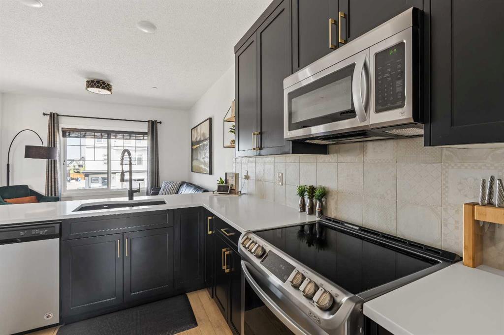 FORMER SHOWHOME ALERT! This immaculate corner-lot detached home is the one you’ve been waiting for — and yes, it still shows like a showhome! From the moment you step inside, you’ll notice the upscale finishes, thoughtful upgrades, and the exceptional care that’s gone into maintaining this home. As a former show suite, it’s packed with extras that elevate it far beyond your typical property. With a rare fully developed layout that includes a main floor walkout, every inch of this home is bright, functional, and move-in ready — all above grade. The spacious tandem double garage offers tons of extra storage, while the landscaped and fenced backyard with large patio doors is ideal for summer evenings and family gatherings. Inside, the cozy family room with am electric fireplace creates the perfect atmosphere for relaxing. The second level is where you’ll find your gourmet kitchen, complete with quartz countertops, custom tilework, stainless steel appliances, and a stylish dining and study area. On the third level — perched on higher elevation — the bedrooms boast fantastic views, and the natural light floods in from every angle. Additional upgrades include luxury vinyl plank flooring, designer accents in every bathroom, and even a full washer and dryer package. Also the home has brand-new siding, shingles, and eaves (all updated this year), plus plenty of storage throughout the home. If you’re looking for something truly special that stands apart from the rest, this is the home you need to see. It’s not just move-in ready — it’s a showstopper.