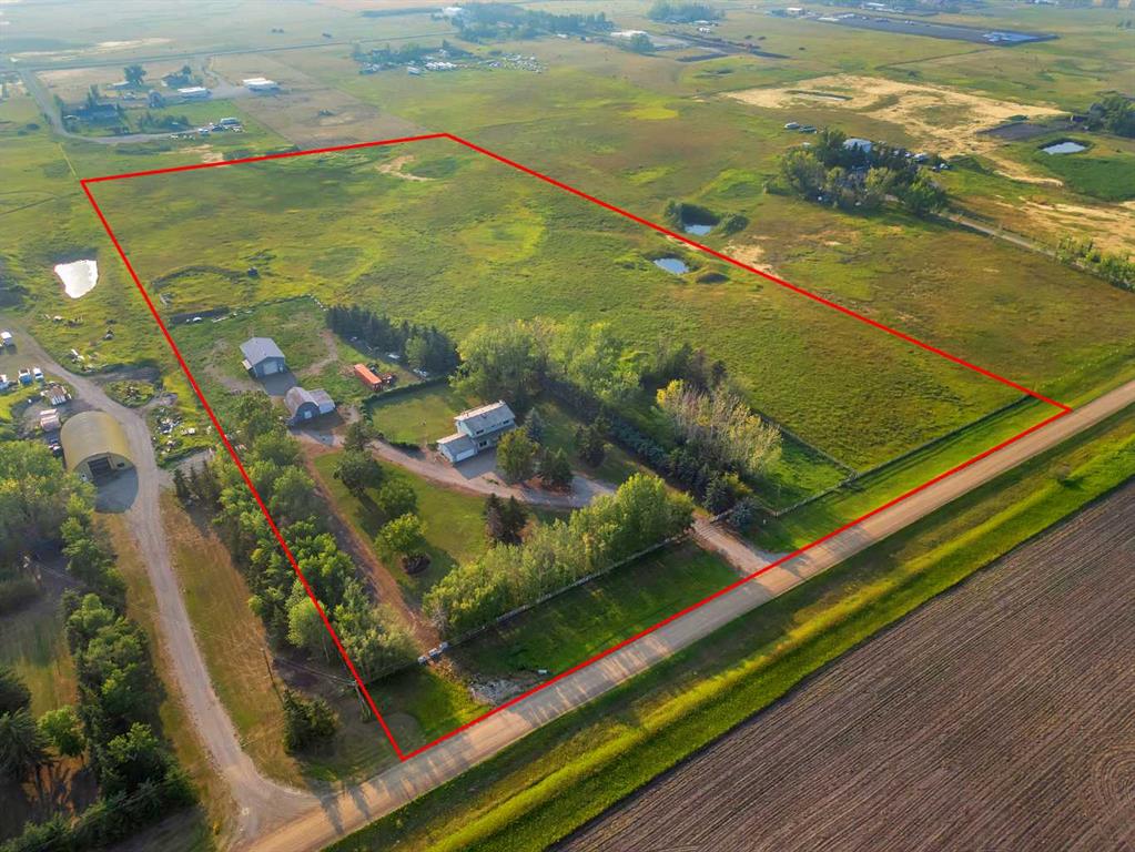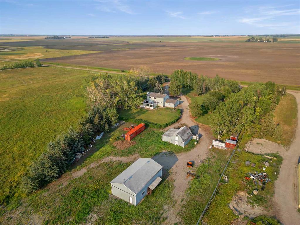 Rectangular great property 18.82 Acreage with house Barn and Shop. The 2 story 2192 Sq feet house with 4 bedroom, 3 full bath. Main floor has Living room, family room, Office, Kitchen, dinning room, laundry, and Half bath. Living room has fire place, and patio door to the deck, with cover hot tub and sauna (As-is) . Main floor office has built in desk, and oak panels. Country style kitchen with lots of white cabinets. Upstairs 4 bedrooms has Primary room with 4 pce ensuite, and walk in closet, and other 3 bedrooms are good size, and 4 pce main bathroom. Bedrooms has carpets, and main floor has wood flooring. Workshop has compressor (as-is) for mechanically enthusiast, Barn and storage, Garage has 2 potable extra water tanks. Backyard has lot of trees, partially fenced and many more. Nearby by school in Chestermere, and close to Glenmore trail, heather and glen golf course.