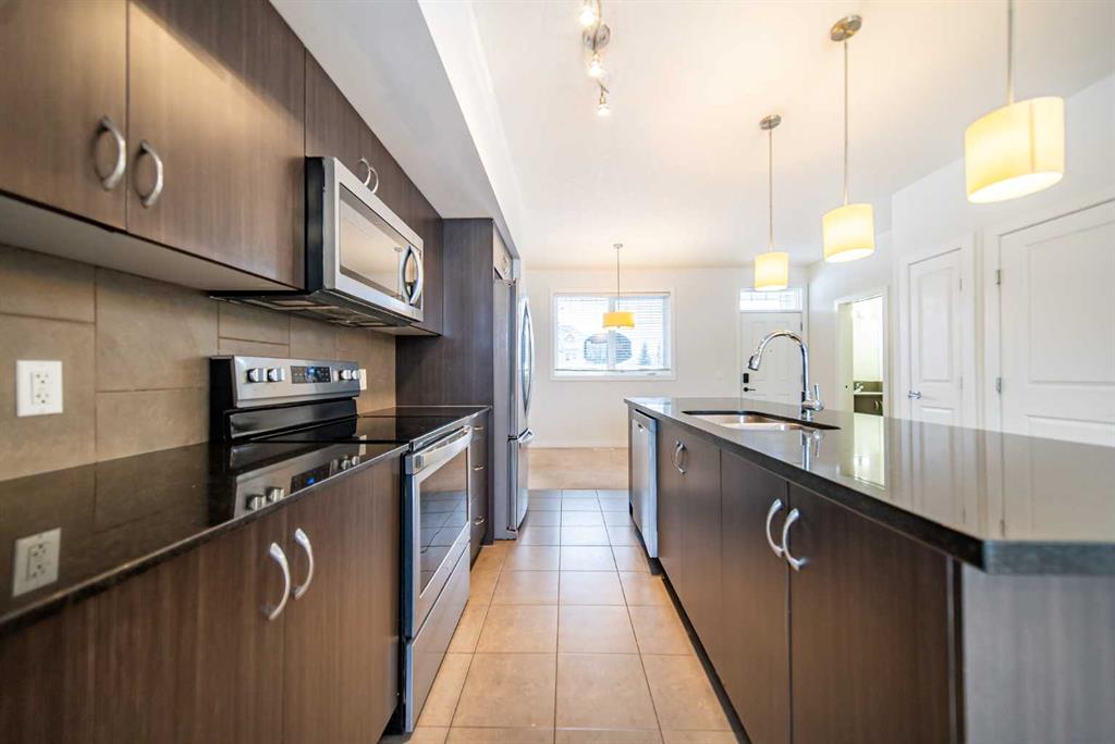 Welcome to this well-maintained townhome built in 2012, ideally located overlooking a peaceful greenspace and park. The open-concept main floor features a spacious living room that flows seamlessly into the kitchen, complete with a large center island, and continues into the bright dining area—perfect for everyday living and entertaining. Brand new vinyl flooring is being installed in the living room and dining room on January 4, and a convenient 2-piece bathroom completes the main level. The entire home has been freshly painted, offering a clean, modern feel throughout. Upstairs, you’ll find a generous primary bedroom with a large walk-in closet and a 5-piece ensuite featuring dual his-and-her sinks. The second bedroom also offers its own walk-in closet, and a full 4-piece bathroom completes the upper floor. Brand new carpet is being installed upstairs on January 2, adding comfort and freshness to the sleeping areas. The unfinished basement provides a blank canvas, ready for your personal design and future development. This home includes a dedicated parking stall and is ideally situated within minutes of three schools, a short drive to extensive shopping amenities, and the South Health Campus Hospital. An excellent opportunity for first-time buyers, families, or investors seeking comfort, updates, and a prime location.