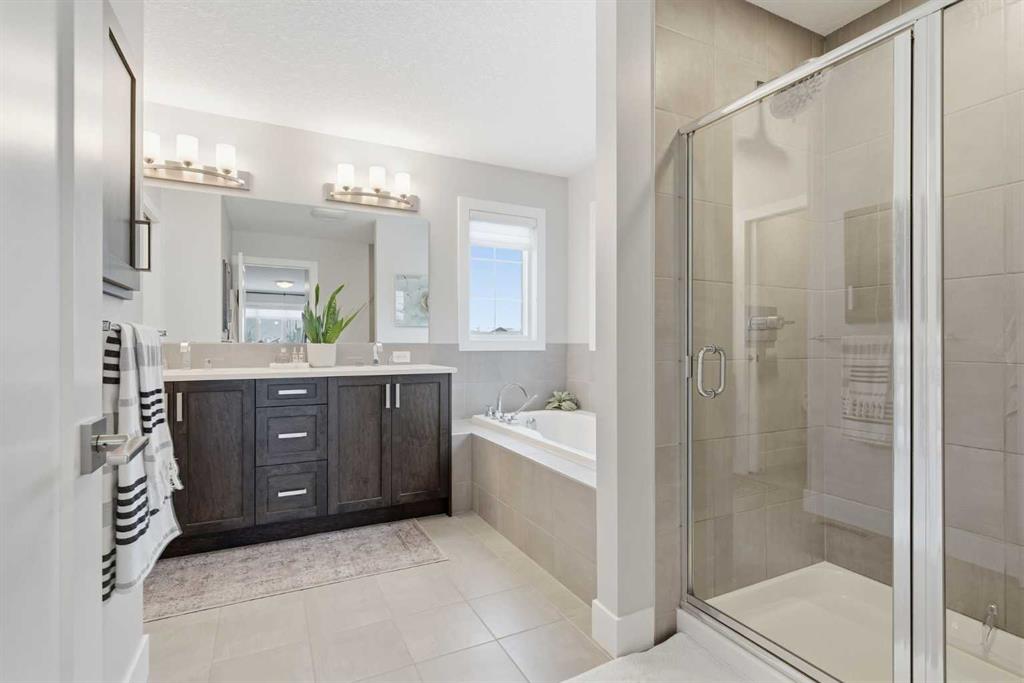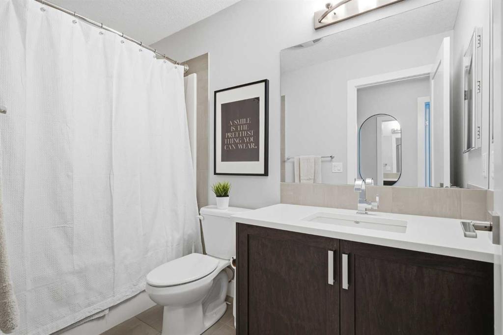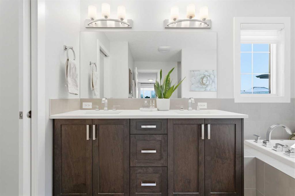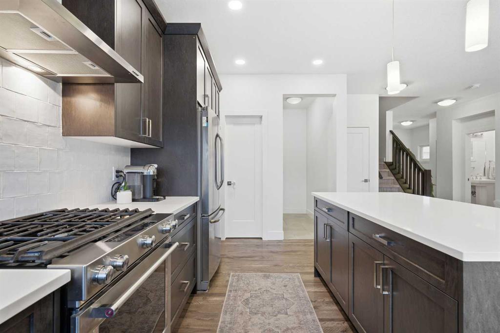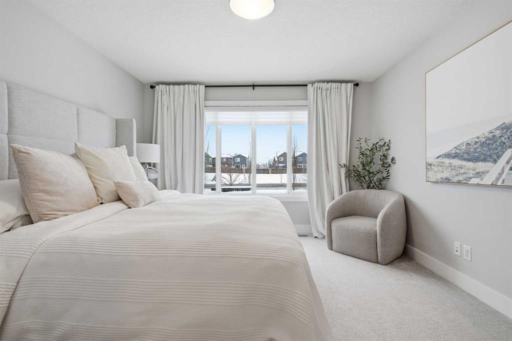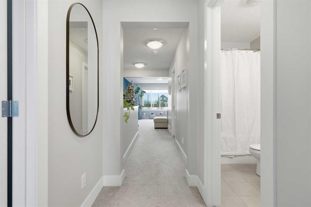 Welcome to beautiful Mahogany, one of Calgary’s most sought-after, family-friendly lake communities. This thoughtfully updated and well-maintained two-storey home reflects true pride of ownership and offers a functional layout with generous living space, making it an excellent option for families. The main floor features a kitchen with dark maple cabinetry, white quartz countertops, full counter-to-ceiling tile backsplash, and a gas range with hood fan. Additional highlights include 9 ft ceilings, upgraded baseboards, central A/C, Hunter Douglas window coverings, and a gas fireplace. Upstairs, the primary bedroom includes a spacious ensuite with raised quartz countertops. Two additional bedrooms and upper-floor laundry complete the level. The basement has been professionally developed and adds a fourth bedroom, a full bathroom, and a large rec room. Outside, the west-facing backyard is fully landscaped and includes a natural gas line on the deck. An extended driveway and concrete walkway provide convenient backyard access. Residents enjoy year-round lake access with private beach use, clubhouse amenities, and skating rinks in the winter months. Located close to schools, playgrounds, and everyday amenities, this home is a great opportunity to live in one of Calgary’s premier lake communities.