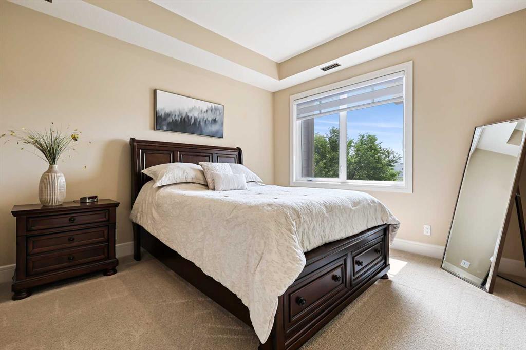 Welcome to Sanderson Ridge, an adult community that cradles beautiful Fish Creek Park. No detail is overlooked, from the stunning craftsmanship of the exterior timber to the unsurpassed quality in the finishes of your suite. Sanderson Ridge is well-equipped for any hobby. Pool tables, games & poker rooms, fitness centre, bowling alleys, craft room, wine cellar & woodworking shop – complete with power tools – are waiting for you. There’s a movie theatre, swimming pool, hot tub, steam room, coffee bar, library, fully equipped kitchen and “The Sanderson Room” available for events & 2 car-wash bays. Discover the ultimate in luxury and resort-style living, where every detail is designed for your comfort and joy! This beautiful unit features bright, sunlit views to the south, infusing the space with warmth and light. Step inside and you’ll be struck by the 9½ foot ceilings, cozy foyer, luxury vinyl plank floors, Santino Bianco porcelain tiles in bathrooms, recessed lighting throughout, a bright open floor plan and large windows that let the sunshine in. You will be delighted with the gourmet kitchen, featuring gorgeous quartz countertops, trendy backsplash, Blanco Precis silgranit under-mount double sink, stainless steel appliances including gas range, stylish hood fan, French door refrigerator with water and ice maker, built-in dishwasher, and microwave drawer. The spacious living area is perfect for hosting unforgettable gatherings. Step out onto the deck and bask in the warm sunshine – it’s the ideal spot to enjoy your morning coffee or savor a glass of wine as the day unfolds! For added convenience, you’ll find a BBQ hook-up ready for your outdoor grilling needs. The primary suite has a walk-thru closet fitted with custom closet organizers. Unwind in the spa-like ensuite featuring a double vanity and quartz countertops, after partaking in the many activities that Sanderson Ridge has to offer. Another bedroom, in-suite laundry complete with a washer & dryer, plus a striking main 4-piece bathroom, adds the perfect finishing touch to this impressive suite. You’ll appreciate the convenience of having a titled underground parking stall and a secure storage area conveniently located near the elevator. Note this unit is on the West side of the complex and was completed in 2022. Make sure to add this to your list to check out—you’ll be glad you did.