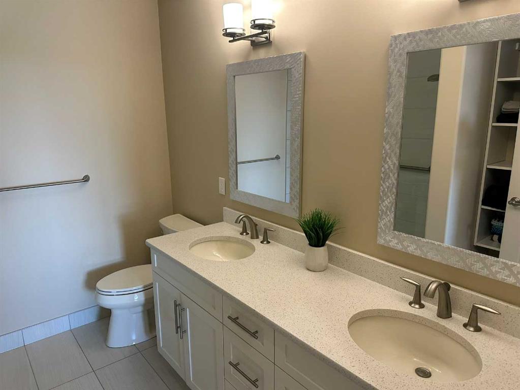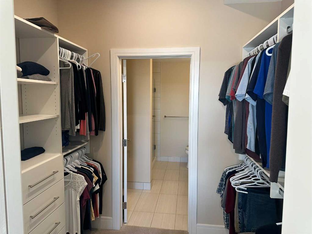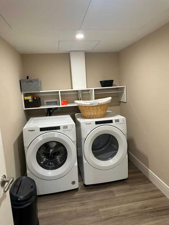 Your primary suite offers a peaceful retreat with a spacious walk-through custom closet and a spa-inspired ensuite featuring double sinks and quartz counters. A second bedroom and full bathroom, plus a convenient in-suite laundry with washer and dryer, complete the layout.