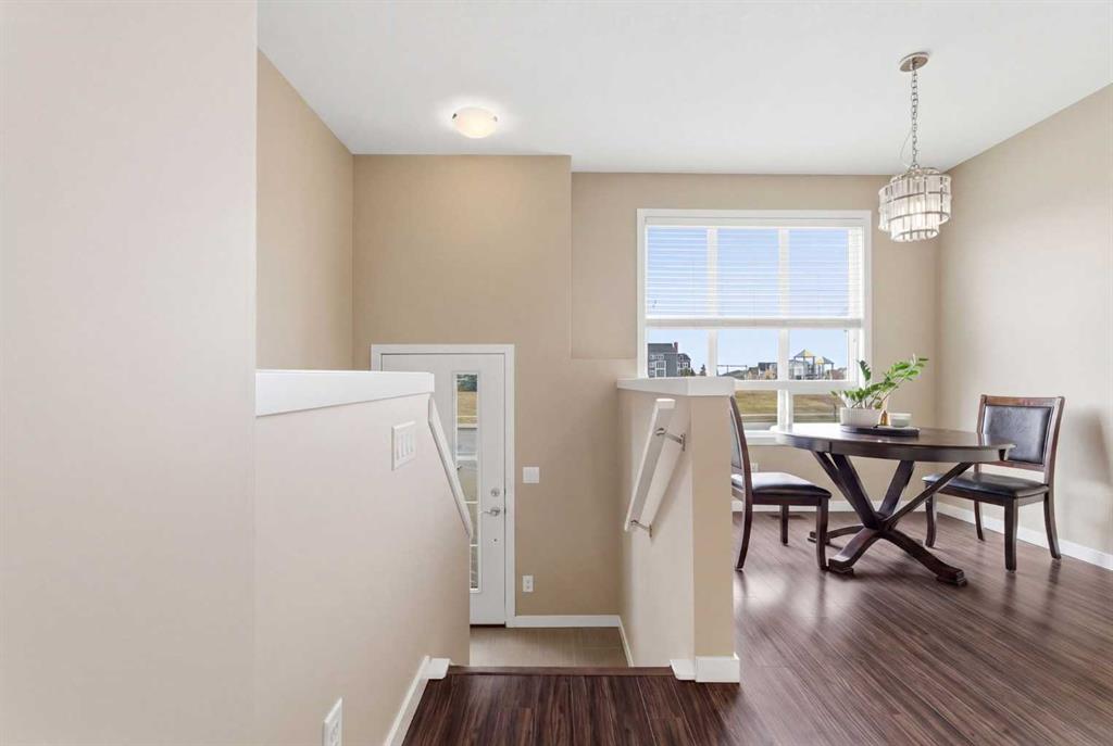 Welcome to this well-maintained townhome in the desirable community of Copperfield offering 1,682 sq ft of total developed living space! Freshly painted throughout, this property is a fantastic opportunity for families or investors alike. Ideally located facing west onto a park and playground with a basketball court, this home offers a bright and open setting with beautiful views and easy access to outdoor space. Enjoy relaxing on the sunny front patio, perfect for taking in the evening sun. The main floor features a welcoming dining area as you enter, leading to a functional central kitchen complete with an island with sink and stainless steel appliances. Upstairs you’ll find two spacious bedrooms, including a primary bedroom with ensuite. The second bedroom has convenient access to the shared bathroom, with a pocket door providing separate access to the tub area. The fully developed lower level offers even more living space with a large third bedroom, versatile flex room, full bathroom, and stacked laundry. Additional highlights include a rear parking pad for added convenience. A great opportunity to own a move-in ready home close to parks, pathways, ponds, schools, and amenities. Convenient access to major routes such as Deerfoot Trail and Stoney Trail makes commuting throughout Calgary quick and easy.