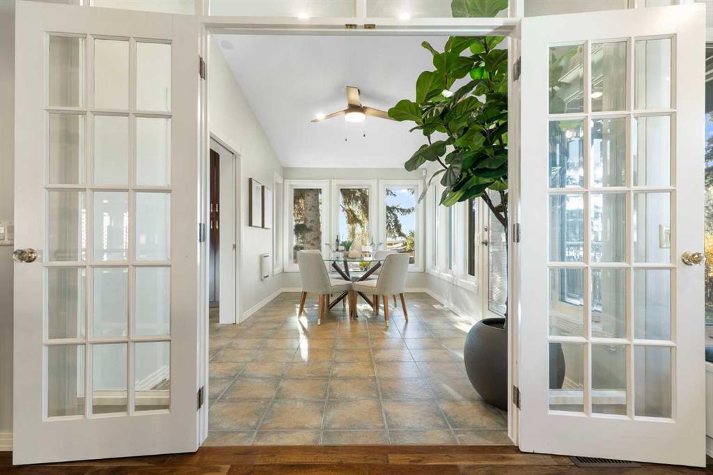 OPEN HOUSE Saturday Noon-2:00pm, Sunday 1:00-3:00pm — ***Rare Opportunity on Prestigious Silver Valley Blvd — Homes on this highly sought-after street — let alone bungalows — rarely come on the market, making this a truly exceptional offering. This bungalow features a lovely primary suite overlooking the front yard with breathtaking views of Bowmont Park, the river valley, and downtown, a defining highlight of the home’s charm. Located near the off-leash dog park and surrounded by wonderful neighbours, it offers the perfect balance of privacy and community. The main level boasts a large formal dining room, a sun-drenched breakfast area with vaulted ceilings, a charming window seat, and gorgeous French doors, and a bright office also with elegant French doors, all showcasing the home’s character and charm. Entertain effortlessly in the expansive kitchen, with granite countertops, abundant cabinetry, and a gas stove, which flows seamlessly into the inviting breakfast nook and formal dining room. The main living areas feature elegant hardwood and tile flooring, while the family room features a warm wood-burning fireplace. The primary suite is a serene retreat, complete with an updated ensuite with new vanity. The second bedroom on the main level includes a generous walk-in closet, and all bathrooms have been beautifully updated, including a main bath with a jetted tub and heated floor. The lower level offers versatile living spaces, including two additional bedrooms with newer egress windows, a large beautifully updated bathroom with heated floor, double vanity & shower, two recreation areas, a family room with an electric fireplace, a den/workout space, and a separate entrance—ideal for multi-generational living or guests. The laundry room includes cabinetry, a sink, and newer washer/dryer (2022). Meticulously maintained, this home features 13 triple-pane windows (2019), central air (2021), upgraded HVAC, furnace, and hot water tank (2021), as well as an oversized heated and insulated double garage with skylights and 220 wiring. Step outside to the beautifully landscaped backyard and expansive deck, perfect for entertaining or relaxing. Combining timeless elegance, modern comforts, and an unbeatable location, this home is a rare and truly remarkable offering full of character and charm.