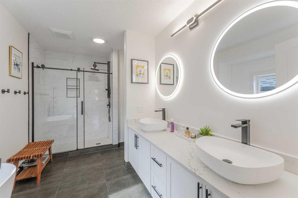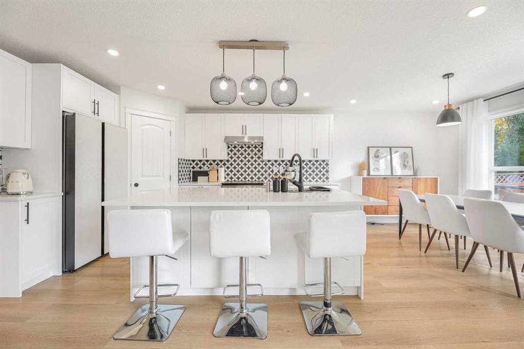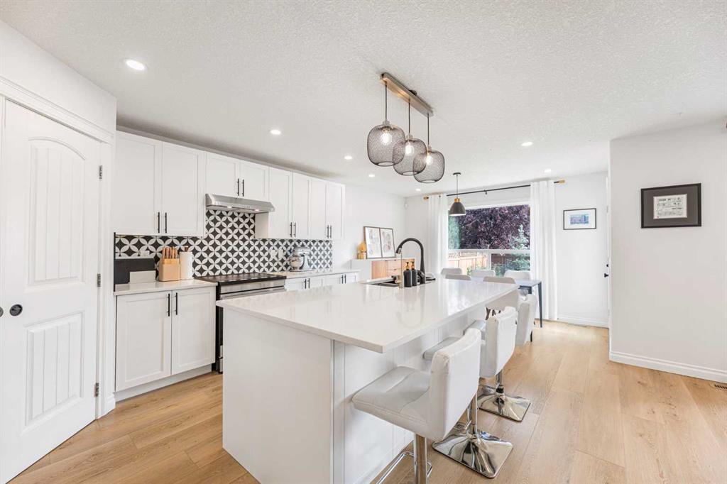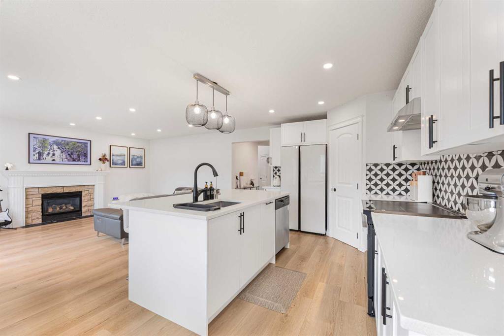 All you need to do is move-in, unpack & enjoy this truly wonderful home in the popular family community of Tuscany, nestled here on this quiet crescent within walking distance to the Tuscany Club & Market. This beautifully updated two storey from Cedarglen boasts vinyl plank floors & brand new central air, total of 4 bedrooms + den, sleek white kitchen with quartz countertops & a host of improvements including new roof, basement development, landscaping & paint. Bathed in natural light, you’ll just love the open concept flow of the main floor with its expansive windows, spacious living room with stone-facing fireplace, large dining room with access to the backyard deck & designer kitchen with island & soft-close cabinetry, walk-in pantry & stainless steel appliances (all new 2023-2024) including Samsung stove with induction cooktop + reverse osmosis system. Upstairs there are 3 lovely bedrooms & 2 full bathrooms…highlighted by the primary bedroom with walk-in closet & renovated ensuite with quartz-topped double vanities, free-standing tub & oversized shower with body-jets. The newly finished basement – completed in 2023 with permits, has a great-sized 4th bedroom, full bathroom & rec room with built-in ceiling speakers. Main floor also has a dedicated main floor office with French doors & laundry room with Samsung washer & dryer. The backyard is fully fenced & landscaped, with a storage shed for your gardening tools & terrific deck where you can enjoy the great outdoors. Among the many improvements since 2023: basement, tile floors in 2nd floor family bathroom, kitchen & laundry appliances, toilets, interior paint, garage door opener, master ensuite, exterior landscaping (front & back), front door & garage door paint, roof & central air (warranty until 2035). Top-notch location here in one of Northwest Calgary’s most desirable neighbourhoods, within minutes to all 4 of Tuscany’s schools (Eric Harvie, Twelve Mile Coulee, St. Basil & Tuscany), the Tuscany LRT & bus stops, off-leash areas & parks, plus quick & easy access to Stoney & Crowchild Trails to take you to Crowfoot Centre, Shane Homes YMCA, University of Calgary, major retail centers, hospitals & downtown.
