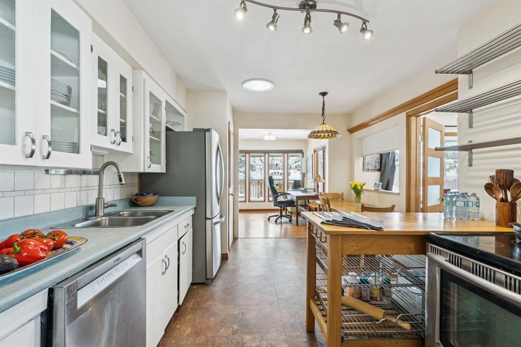 Welcome to an exceptional opportunity in the highly sought-after community of Banff Trail. This prime inner-city location is known for its family friendly atmosphere, proximity to top schools, parks, and unbeatable access to the University, transit, and McMahon Stadium. Situated on a generous sought after 50’x120′ corner lot, this property offers incredible potential for redevelopment, investment, or long term holding. The prominent frontage and corner positioning provide added design flexibility and strong future value, making it an ideal candidate for builders, investors, or those looking to secure a premium lot in a rapidly evolving neighbourhood. The impeccable maintained home itself is filled with natural light and character. The main floor features hardwood floors throughout, a bright and open living groom with cozy gas fireplace, and a seamless flow into the dining area. The spacious kitchen includes glass-front cabinets, a convenient pass-through from the dining are to the breakfast nook, and solar tubes that enhance the already abundant natural light. A thoughtfully added den connects to the primary bedroom and provides direct access to the backyard. Two additional bedrooms, one also featuring a solar tube, and a 4pc bath complete the main level. The lower level offers a versatile layout with a. massive rec room, den which can ideally function as a bedroom, 3pc bathroom, laundry area with ample storage and a large workshop. Step outside to enjoy a large deck overlooking the yard and garden, perfect for summer entertaining. The property also includes a single detached garage and storage shed. Whether you’re looking to move in, rent out, or redevelop, this property delivers outstanding value in one of Calgary’s most desirable inner-city communities. A rare change to secure a corner lot with substantial frontage that’s just minutes away from the LRT, Calgary Winter Club, and Confederation Park.